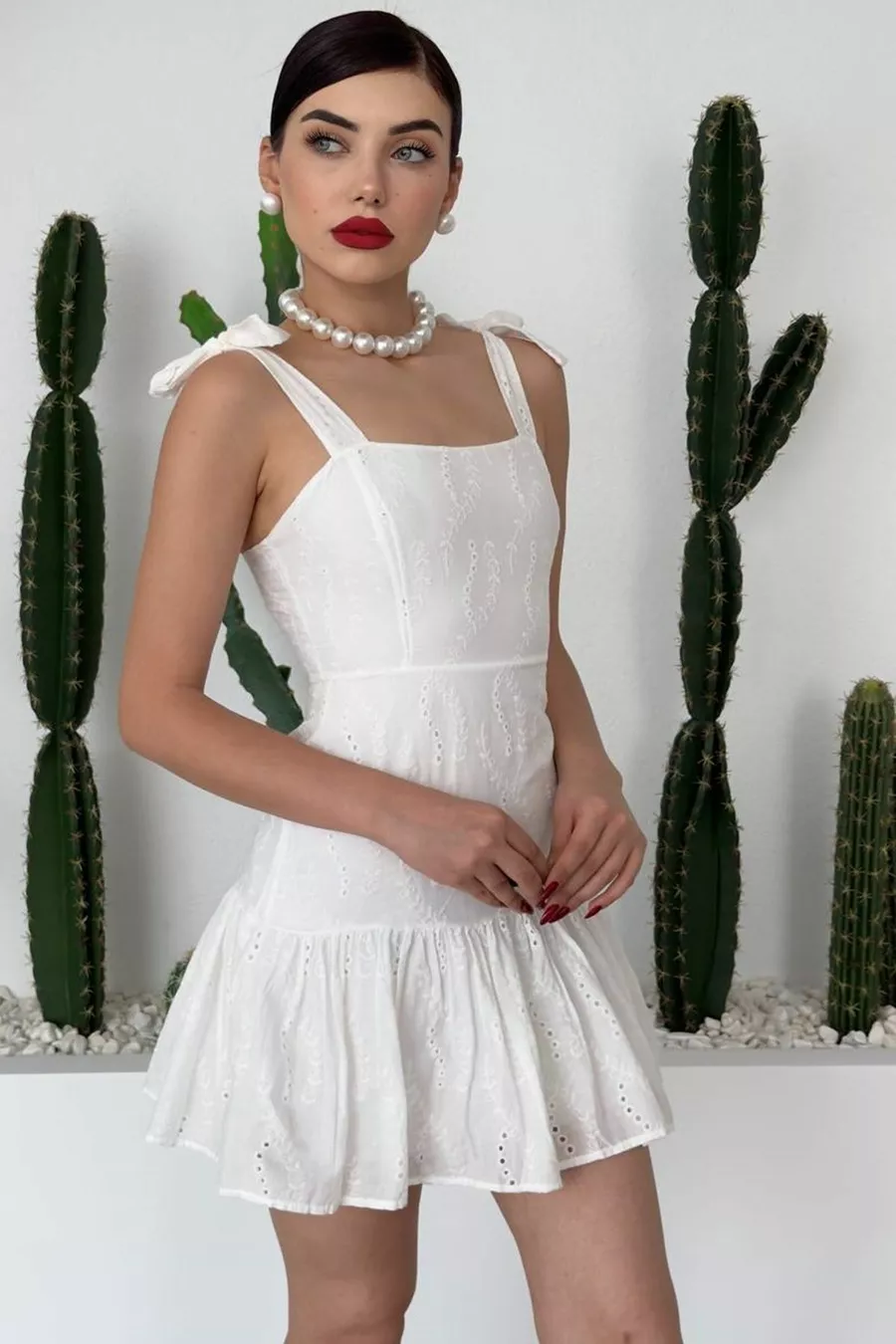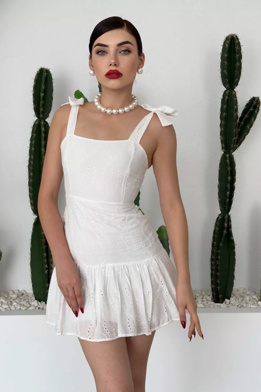 This product will be shipped by \xa0 Quenmadam clothing\xa0. More than 5 stocks are offered to be sold at the campaign price. The seller determines the sales price of the product you have examined. A product can be sold by more than one seller. The sellers of the products offered for sale by more than one seller are ranked according to the price they set for the product, the seller ratings, the delivery status, the promotions in the products, whether the shipping is free or not, and whether the products can be delivered with fast delivery, the stock and categories of the products. A maximum of \xa010 pieces of this product can be ordered.\xa010 units can be ordered by Queenmadam.\xa0This limit is not valid for corporate orders, and different limits can be set for corporate orders. Free returns within 15 days. Click \xa0 for more information. Women's Brode Fabric Strapless Collar Strap Design White Mini Mini Evening Dress 251 Mannequin dimensions and product specifications Height: 171 cm Sample size: S Weight: 58 kg Product length: 80/82 cm Slit Length: cm Bust: 87 cm Waist: 66 cm Hips: 98 cm Leg length: 110 cm Note: Question / answer: For support on the right size choices, you can send us any questions you have in the question / answer section.