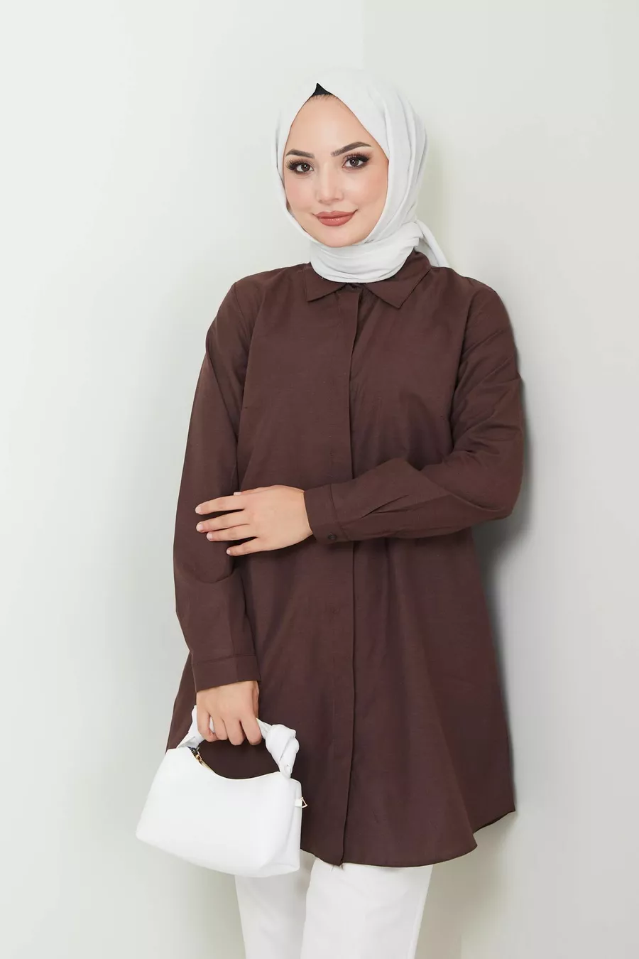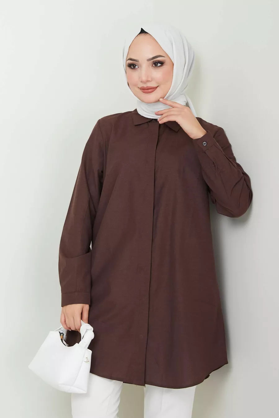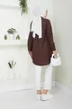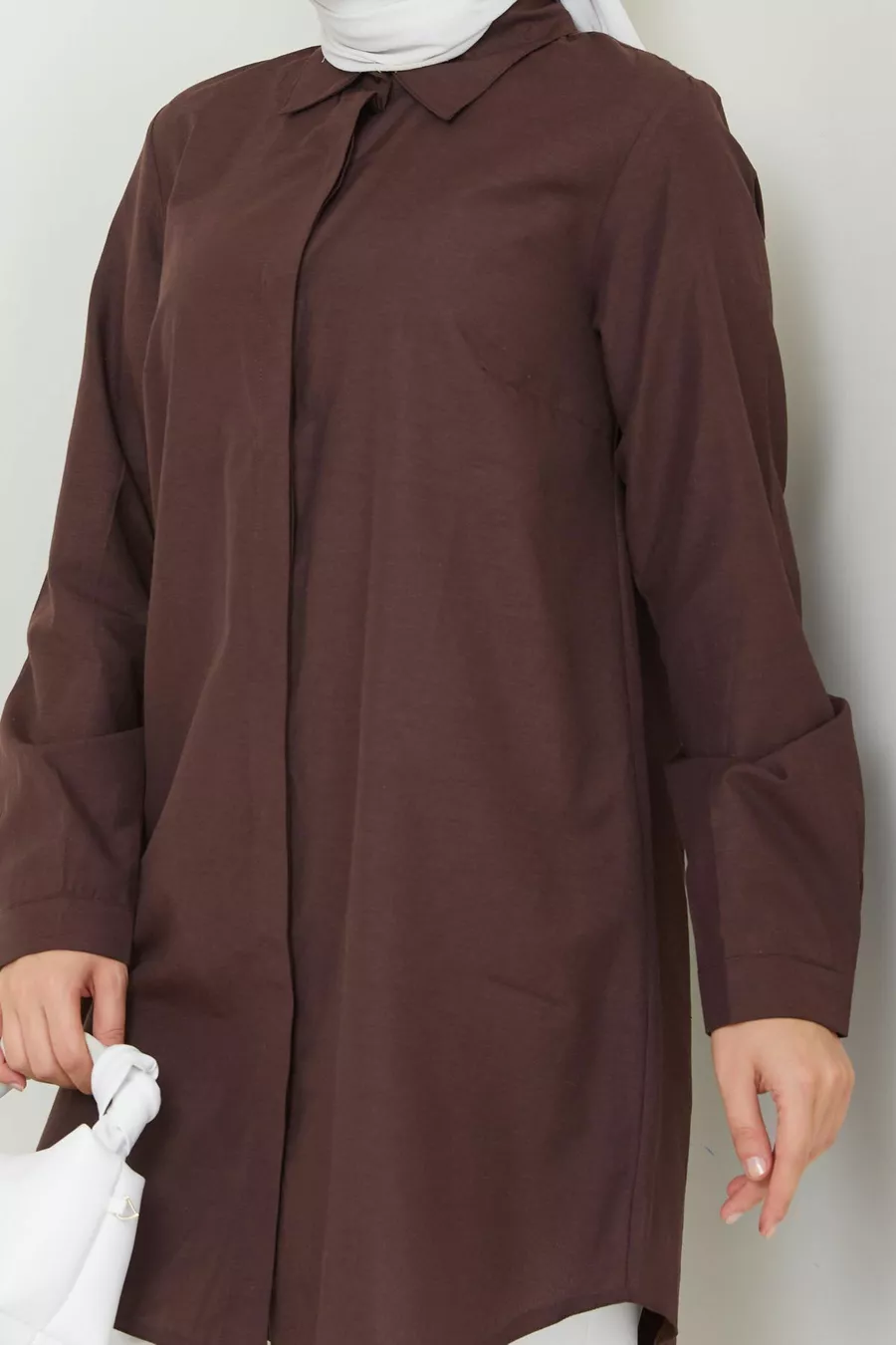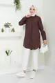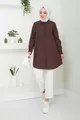 Women's Brown Terikoton Hidden Button Boyfriend Modest Shirt