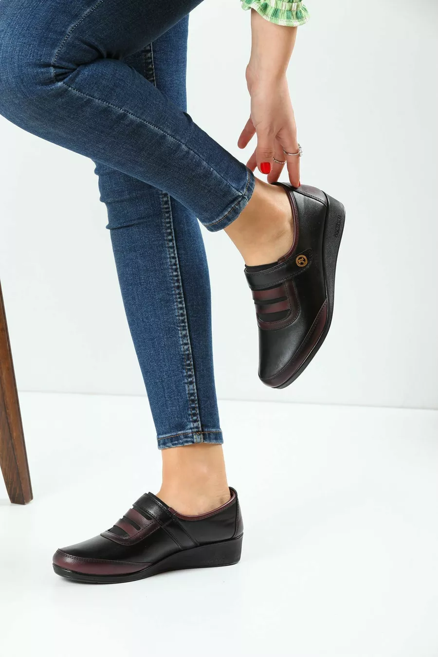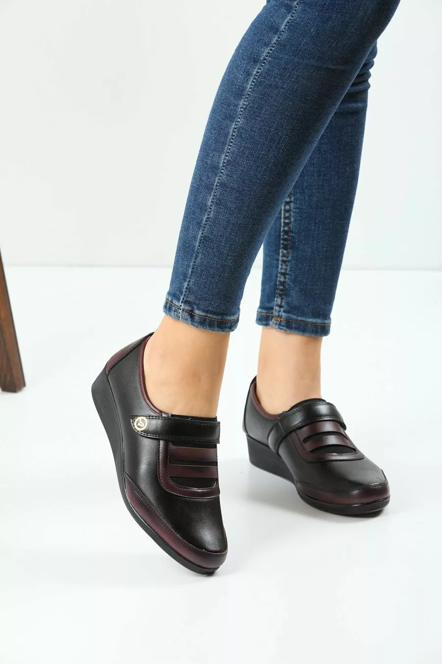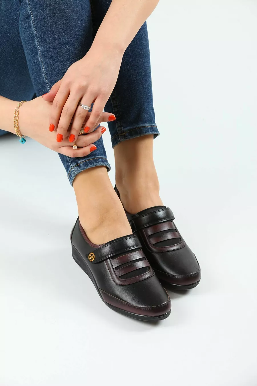 Collection:Basic Additional Feature: Orthopedic Sole Material: Polyurethane Lining Material: Faux Leather Color: Burgundy Sole Material: Poly Upper Material: Faux Leather Heel Length: Short Heel (1- 4 cm) Insole Material: Faux Leather Fastening Type: Laceless Persona:Cool & Comfort Sustainability Detail: No Heel Type: Flat Heel Material Component: 100% Air Washing Instruction:type 4 Pattern: Plain Fabric Type: Woven Environment:Casual Origin:TR Box Condition: No box Outer Material: Faux Leather