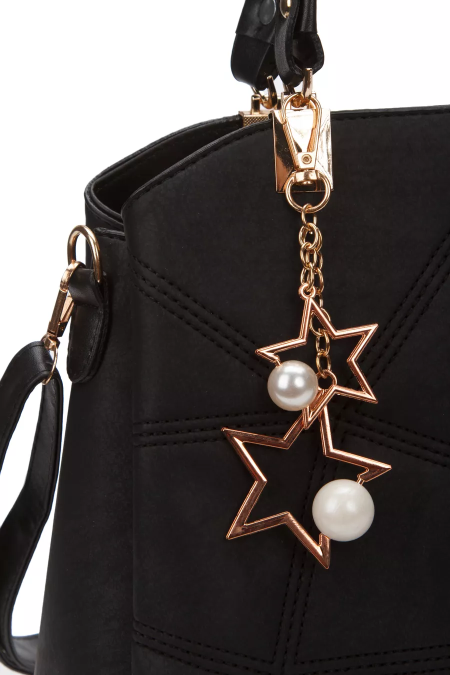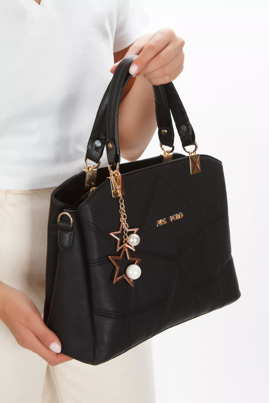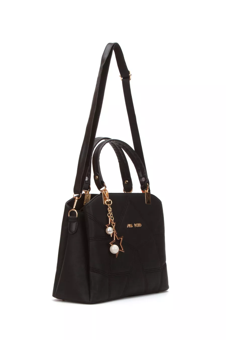 Women's Butterfly Black Hand and Shoulder Bag with Charm Detail