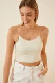 Women's Cold Sore Cream Knit Bustier with Thin Straps