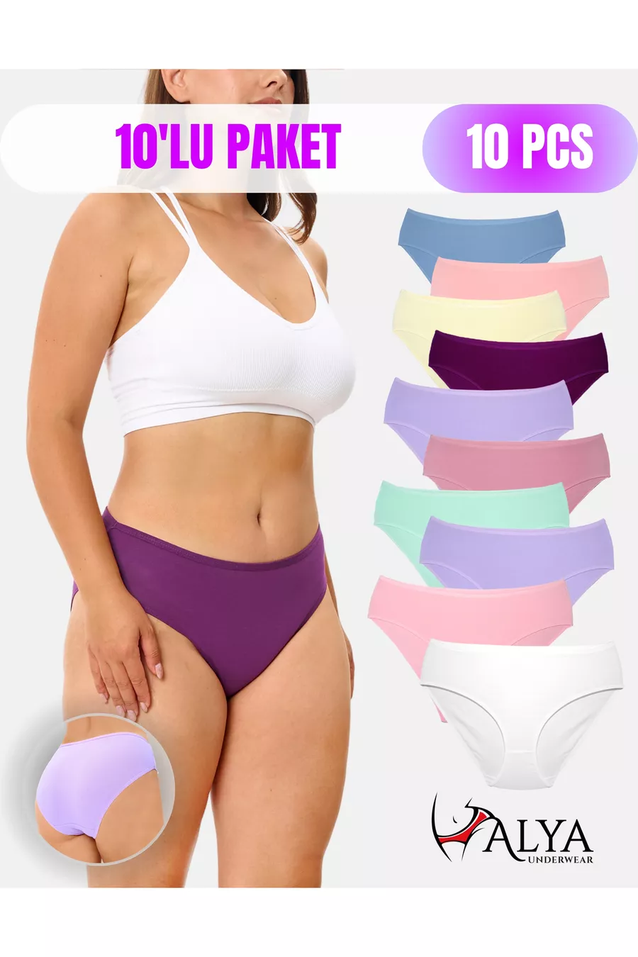Sustainability Detail: Organic Material: Cotton - Elastane Color: Multicolor Package Contents: Pack of 10 Pattern: Solid Product Detail: Elastic Product Type: Solid Fit: Brief Collection: Plus Size Fabric Type: Knit Persona: Cool & Comfort Weave Type: Suprem Waist: High Waist Silhouette: Hipster Additional Feature: No Additional Feature Material Composition: 95% Cotton, 5% Lycra Elastane Bottom Silhouette: Hipster Occasion: Casual/Everyday Washing Instructions: Machine Washable Length: Standard Origin: TR Box Condition: No Box Number of Pieces: 1