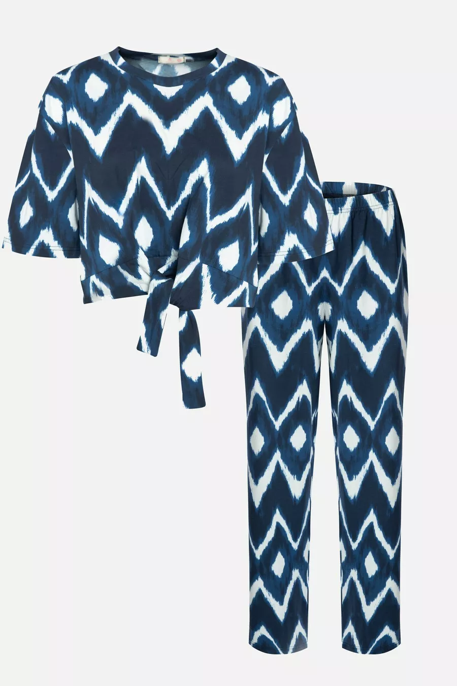 Women's Cotton Front-Tie Printed Crop T-shirt Pajama Set