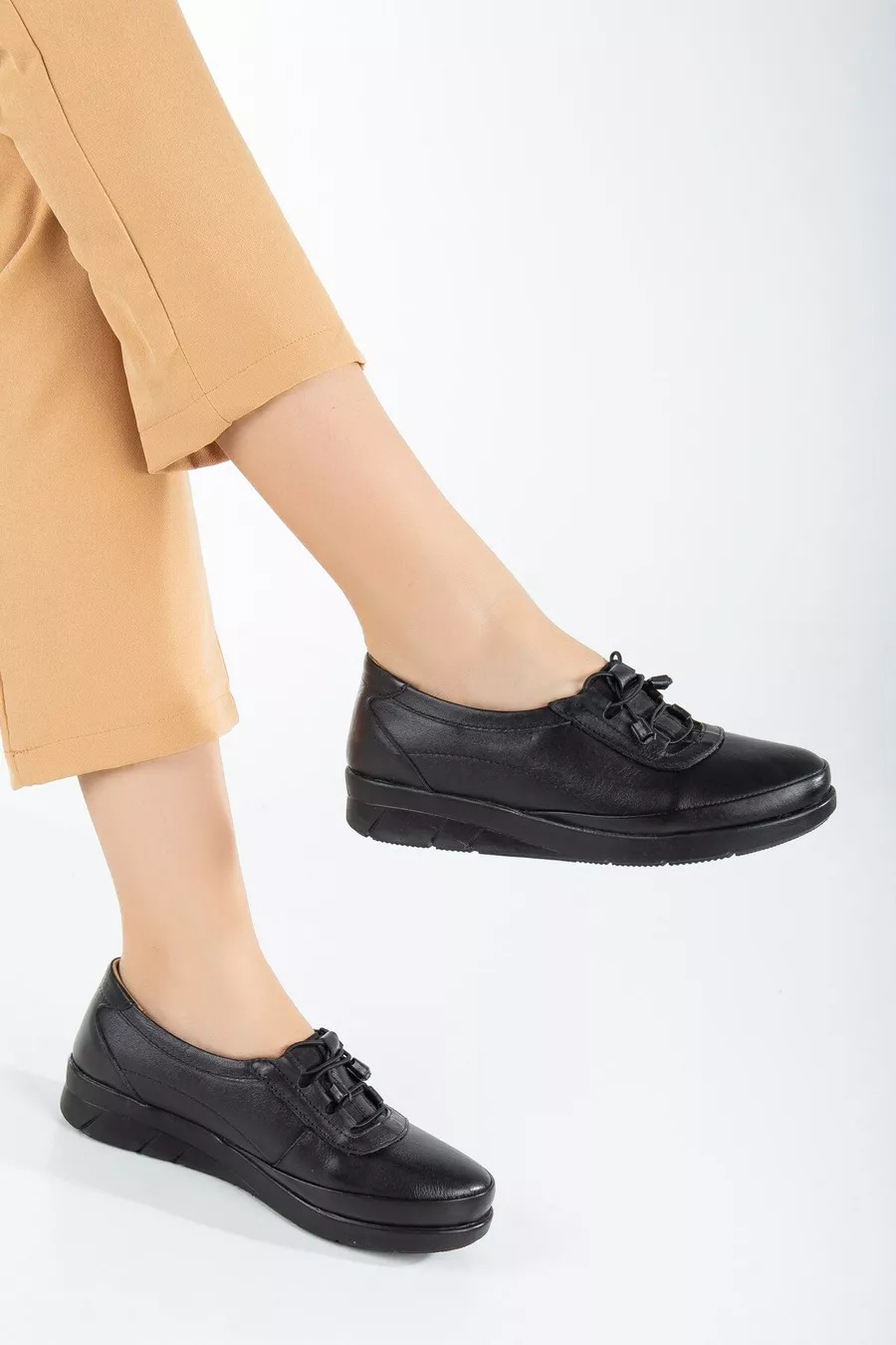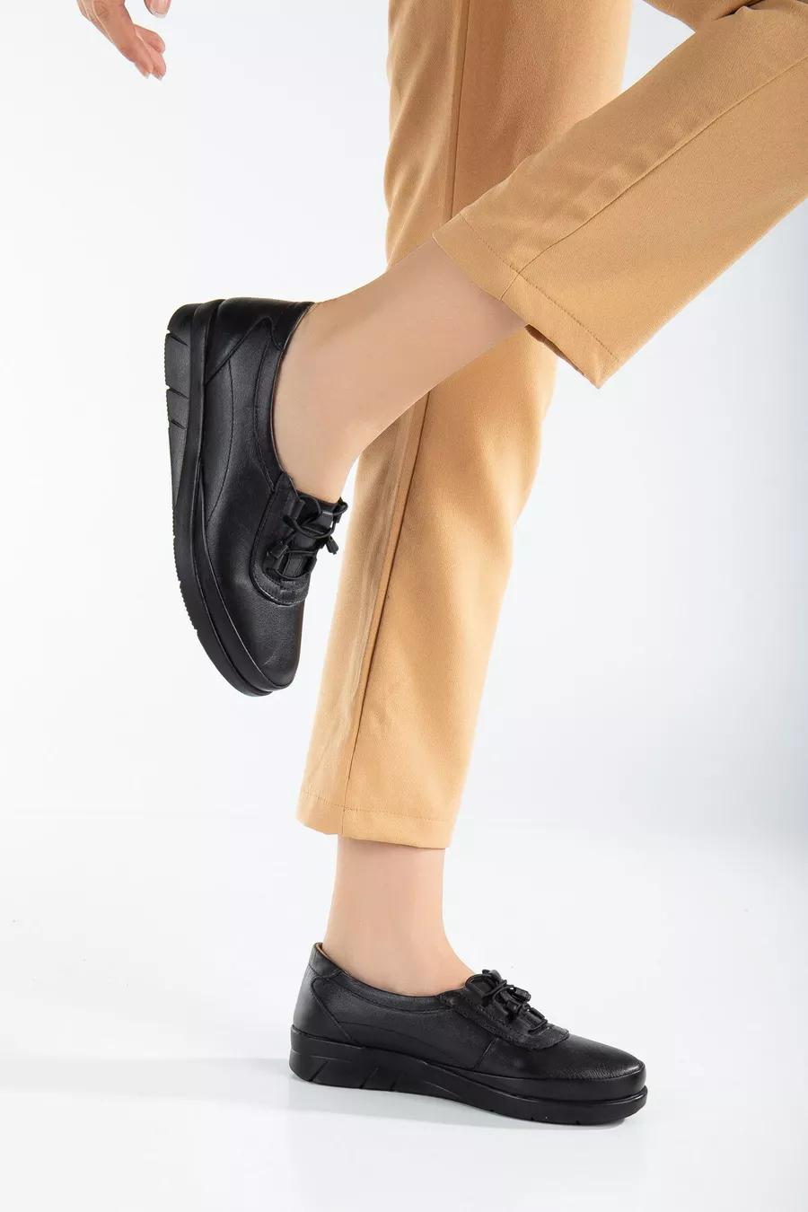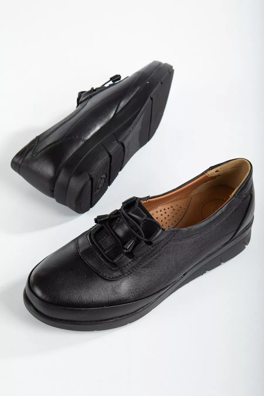 Sole Material: Poly Upper Material: Genuine Leather Material: Genuine Leather Insole Material: Genuine Leather Color: Black Heel Height: Low Heel (1-4 cm) Lining Material: Genuine Leather Closure Type: Elastic Material Composition: 100% Leather Washing Instructions: Type 4 Heel Type: Wedge Heel Pattern: Plain Collection: Design Additional Feature: Orthopedic Sole Sustainability Detail: Organic Occasion: Casual/Daily Exterior Material: Genuine Leather