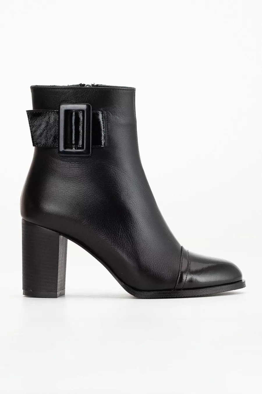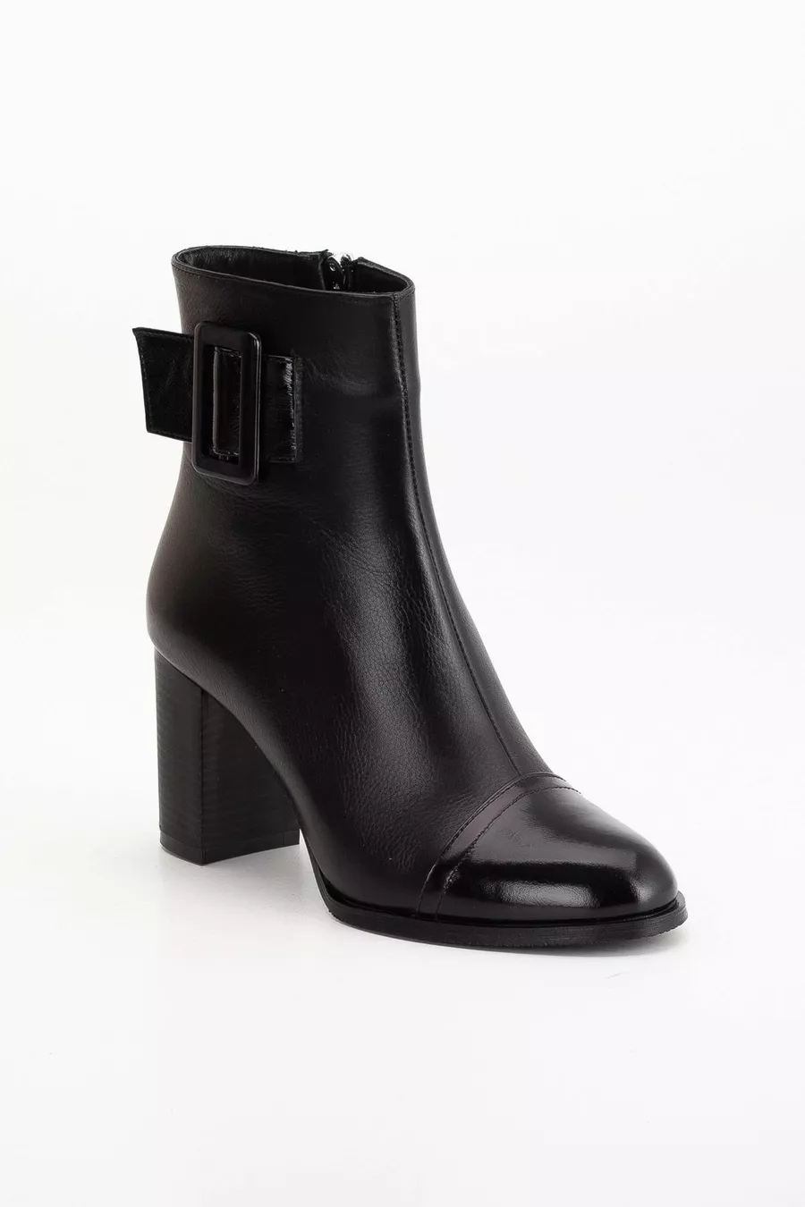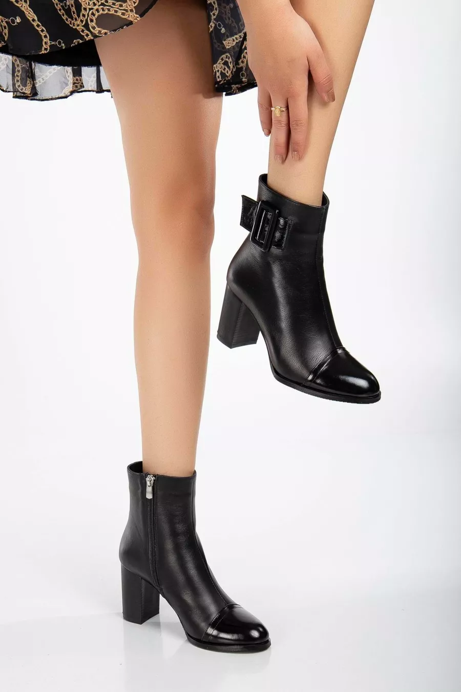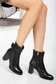 Women's Genuine Leather Patent Leather Patent Leather Detailed Heeled Boots - Black Patent Leather