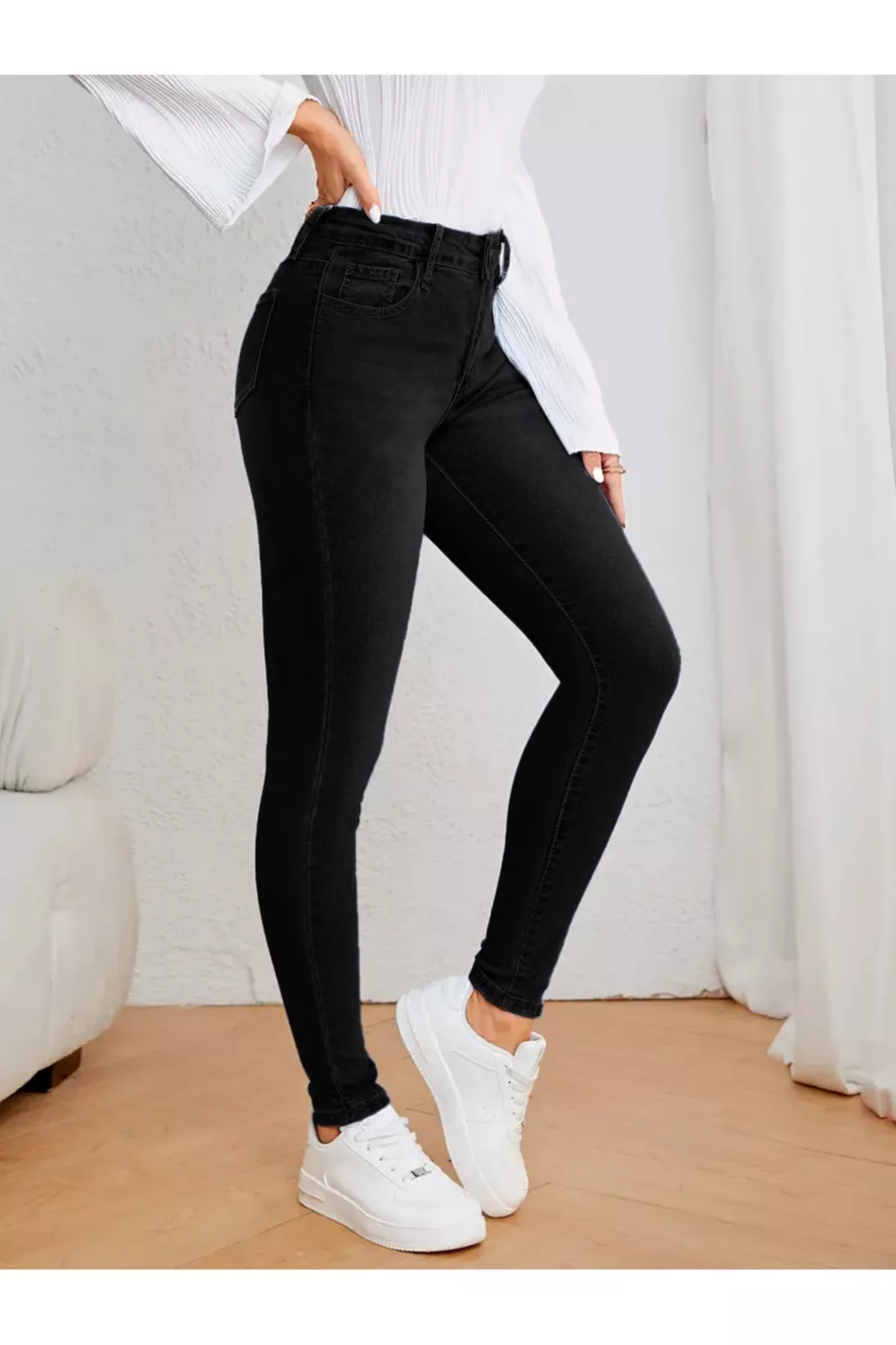 Belt/Waist Status: No Belt Leg Type: Slim Leg Waist: High Waist Color: Black Material: Denim Pockets: 5 Pockets Product Type: Plain Collection: Basic Length: Long Fabric Type: Denim Silhouette: Skinny Occasion: Casual Fit: Skinny Pattern: Plain Additional Feature: Washed Closure Type: Zipper Weave Type: Comfort Sustainability Details: Yes Persona: Cool & Comfort Material Composition: 98% Cotton, 2% Elastane Washing Instructions: Machine wash at 30°C Season: All Seasons Country of Origin: TR Box Status: No Box Package Contents: Single
