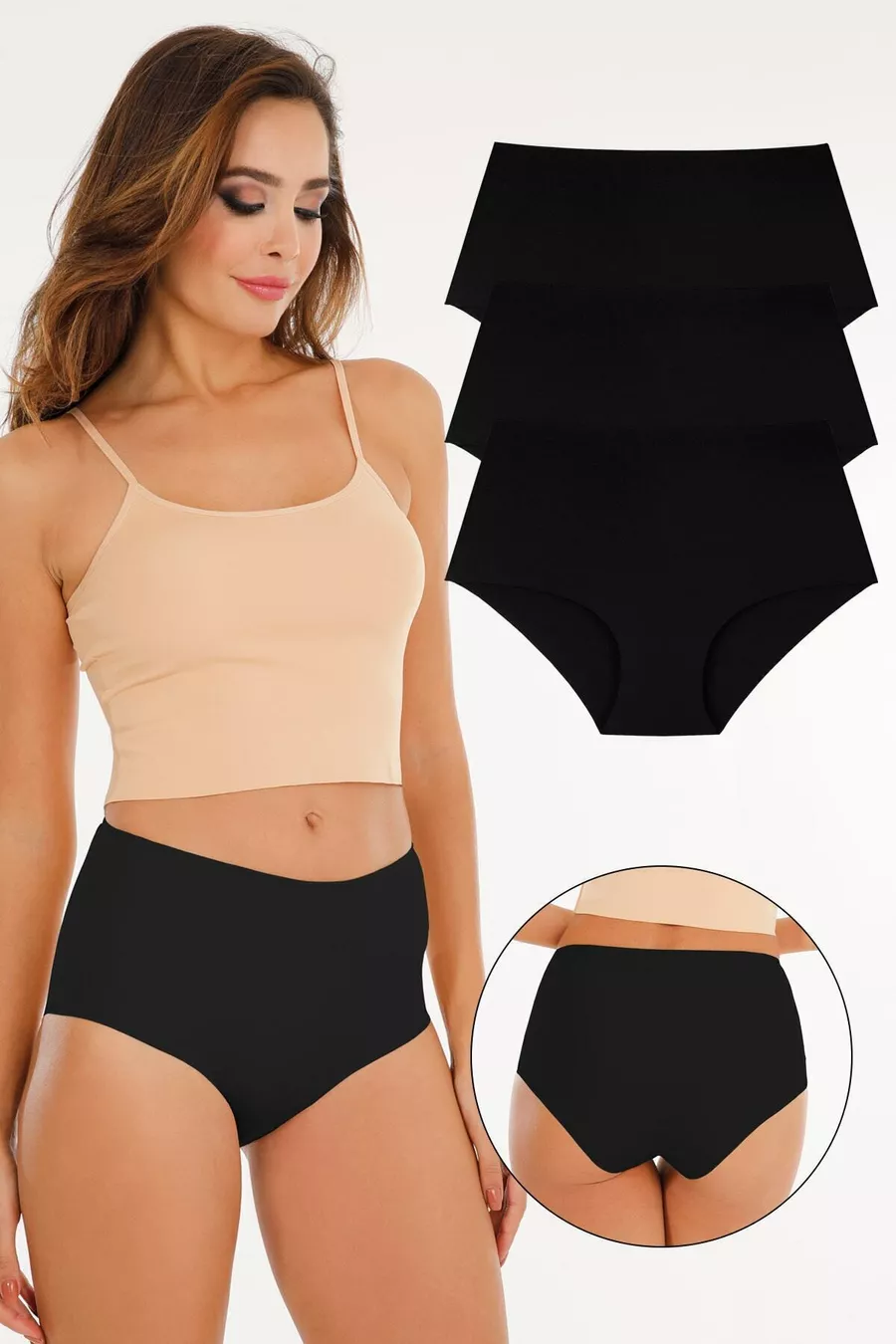 Sustainability Detail: No Material: Polyester Blend Color: Black Package Contents: 3-piece Pattern: Solid Product Detail: Elastic Product Type: Solid Fit: Slip Collection: Underwear Fabric Type: Woven Persona: Cool & Comfort Weave Type: Lace Waist: High Waist Silhouette: Boat Additional Feature: Seamless Material Composition: 90% Polyester, 10% Elastane Bottom Silhouette: Brief Setting: Lounge/Home Washing Instructions: Type 1 Length: Standard Origin: TR Box Condition: No Box Number of Pieces: 3 Pieces