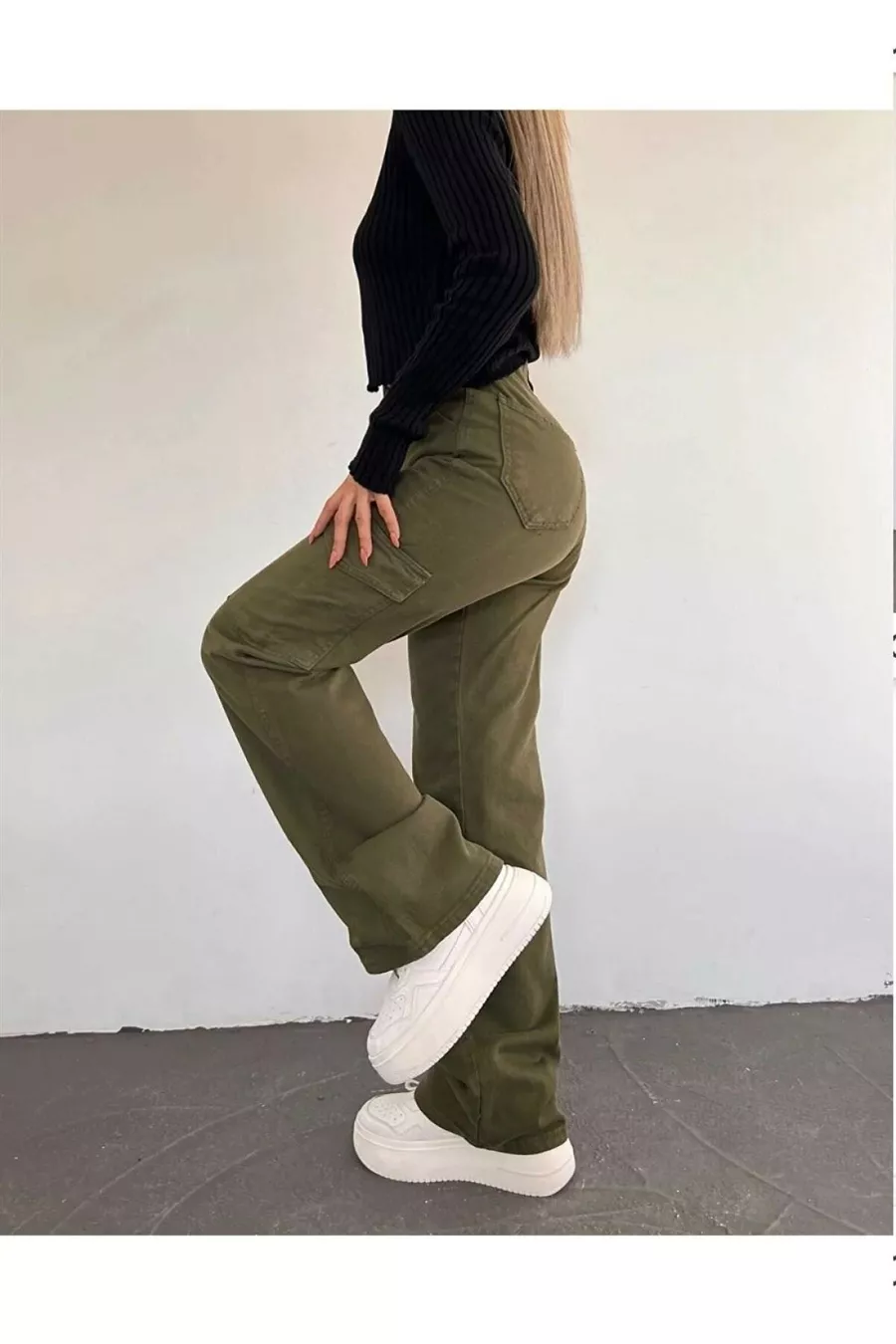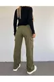 Women's Khaki High-Waisted Wide-Leg Cargo Denim Pants with Cargo Pockets