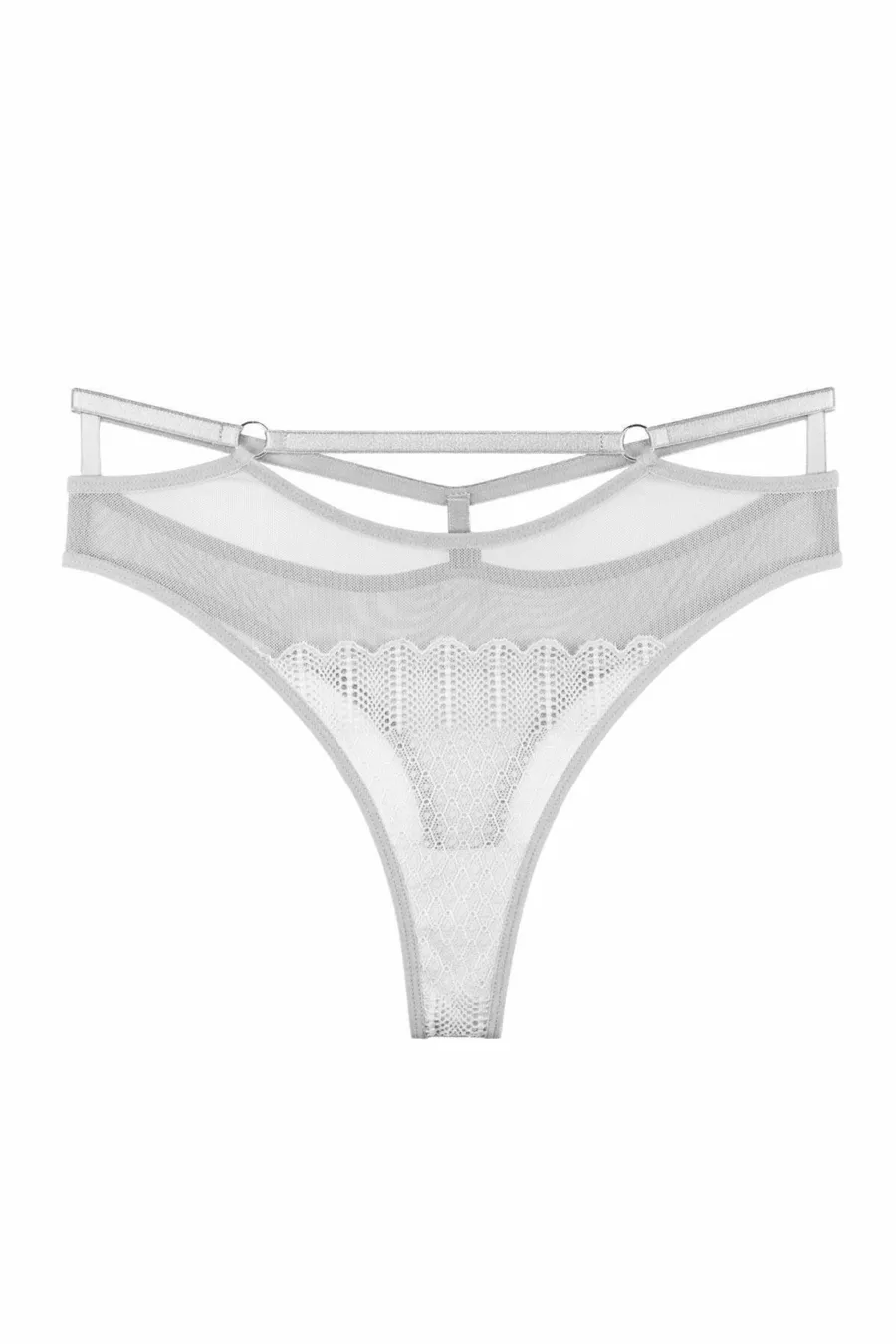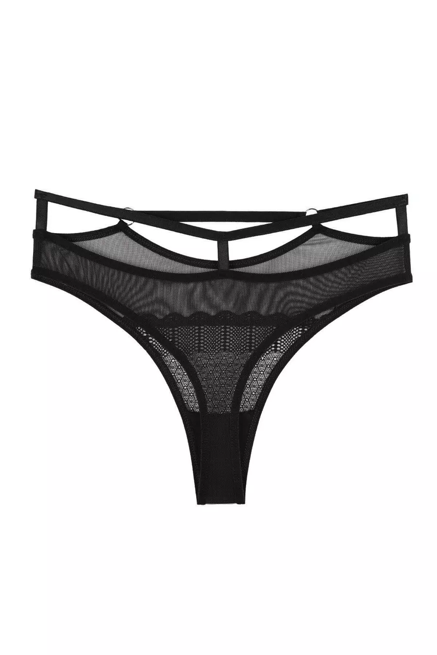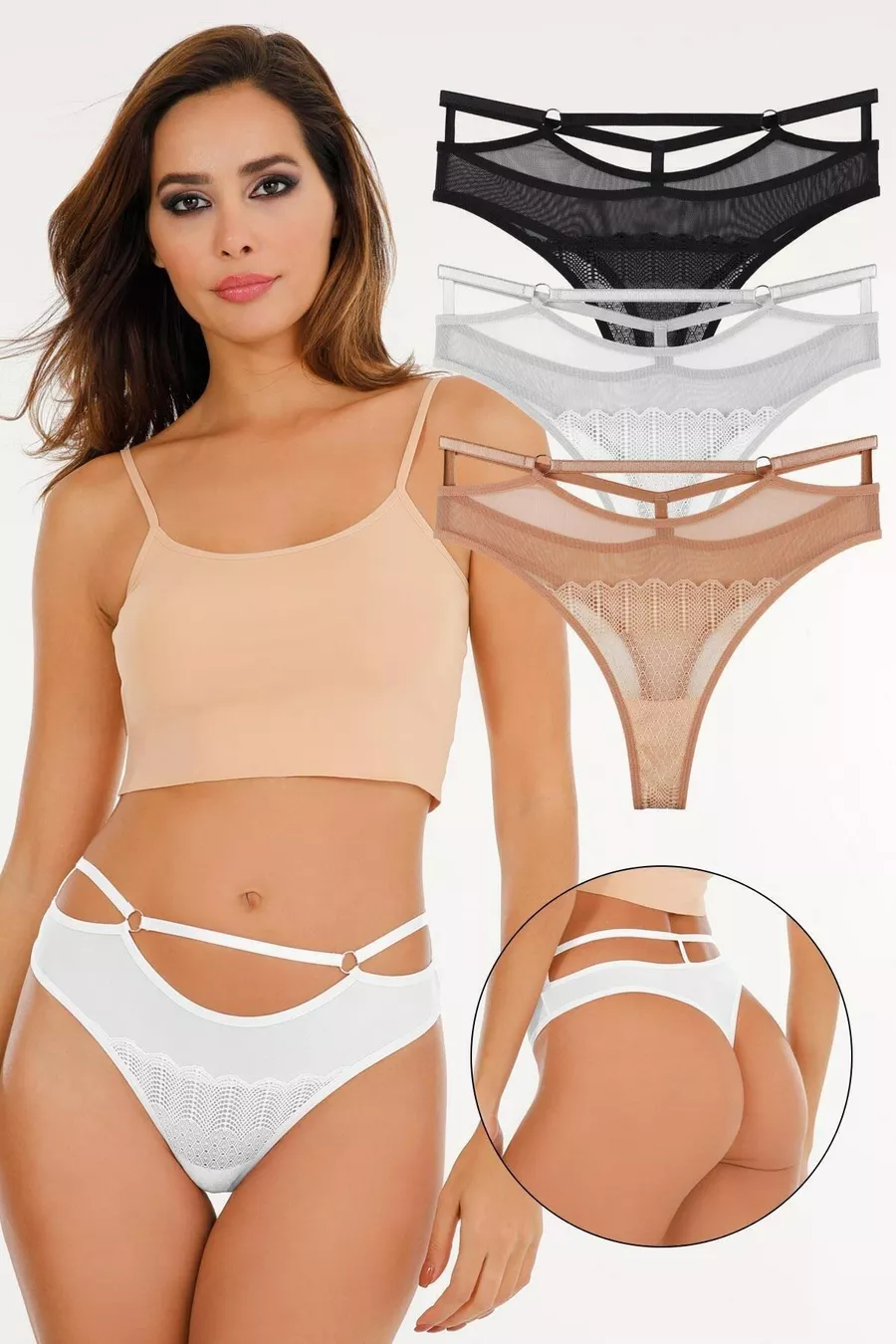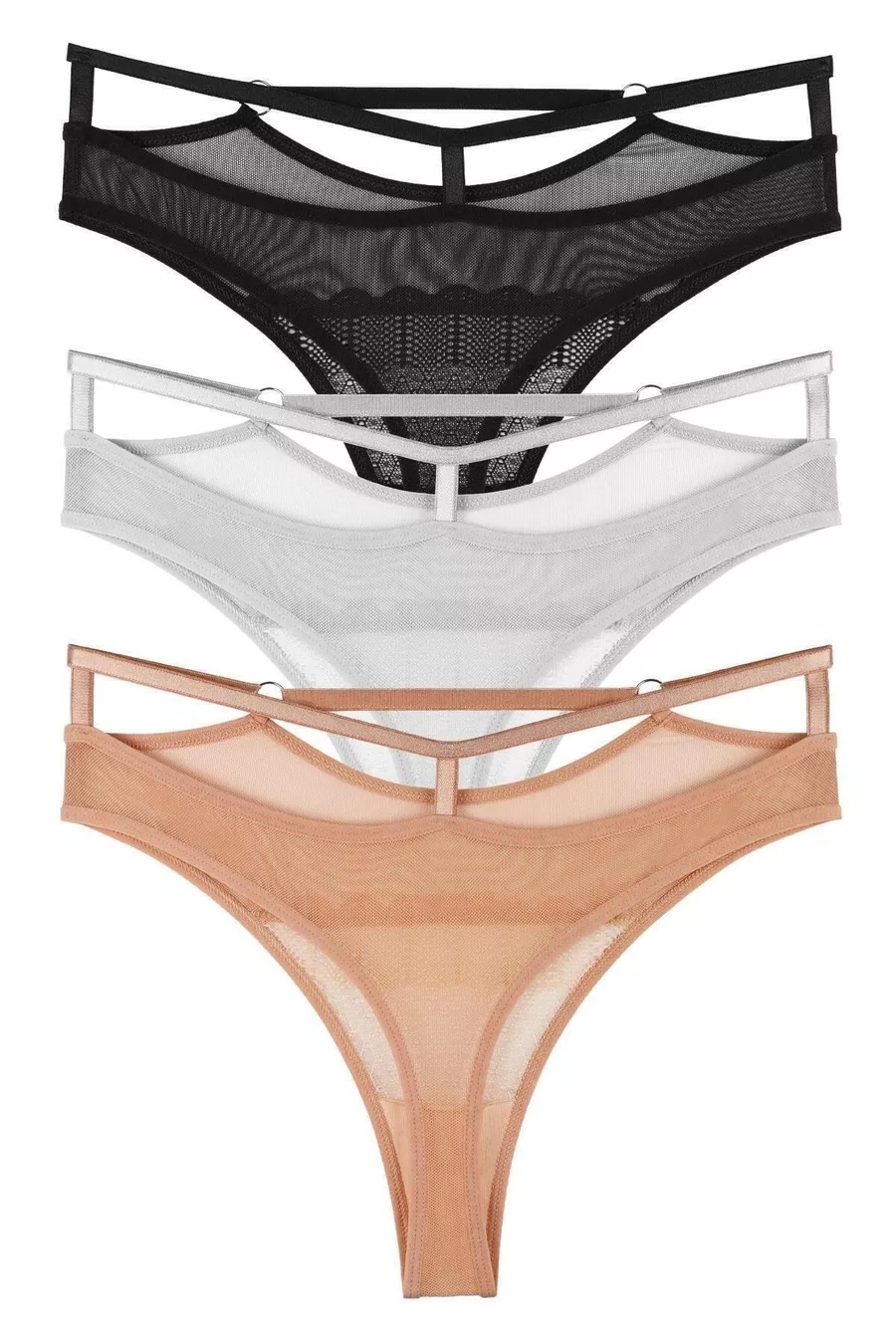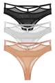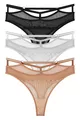 Women's Lace and Tulle Detail Drawstring Waist Thong 3-Piece Panty Set - (PLUS SIZE)