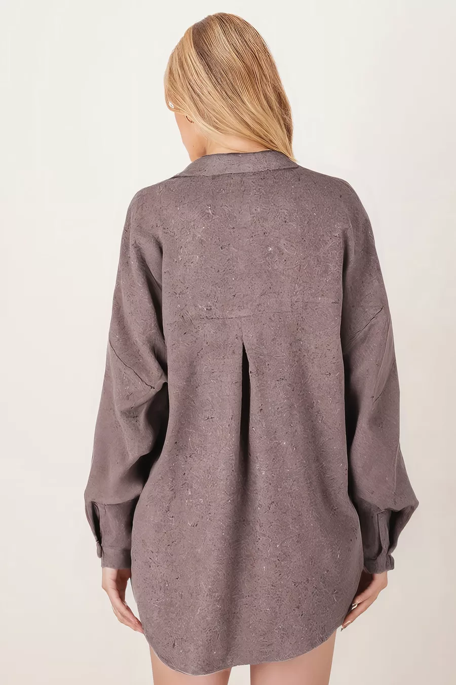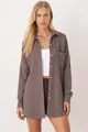 Women's Light Brown Oversized Wool Shirt with Pockets