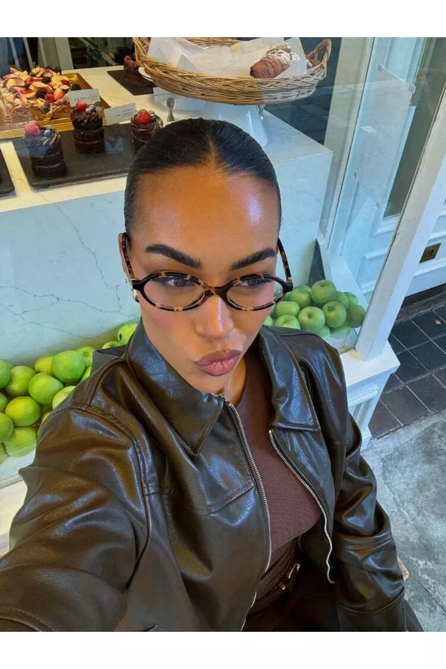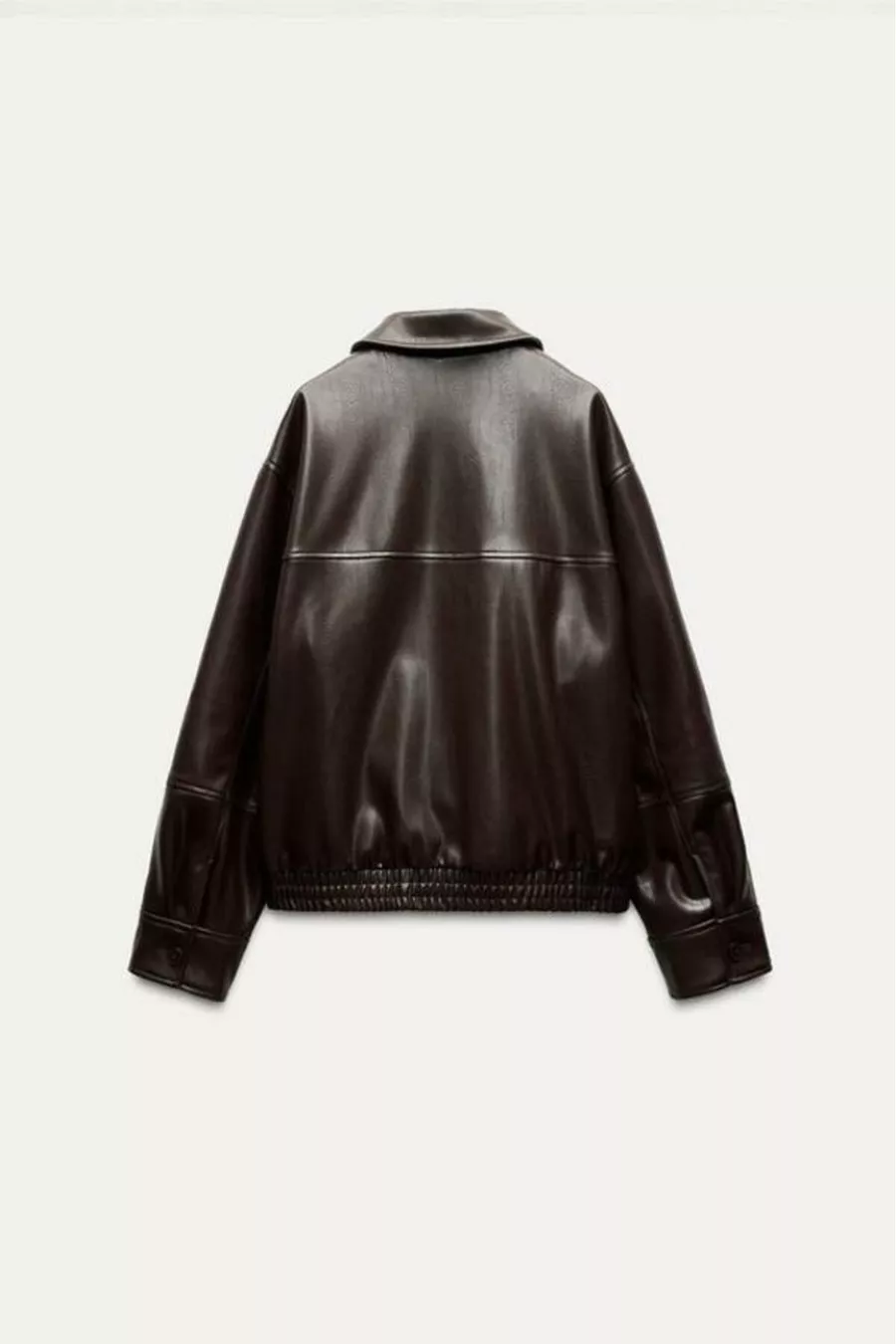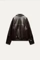Women's Long Sleeve Zippered Leather Bomber Jacket in Dark Brown