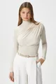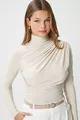 Pattern: Plain Fit: Slim Fit Neck Type: Turtleneck Fabric Type: Woven Material: Woven Sleeve Type: Standard Sleeve Color: Beige Pocket: Pocketless Product Detail: Gathered Product Type: Plain Lining: Unlined Length: Regular Sleeve Length: Long Occasion: Casual/Daily Silhouette: Basic Weave Type: Sandy Additional Feature: No Additional Feature Persona: Cool & Comfort Belt/Strap Status: Beltless Print/Embroidery Technique: Print-free Closure Type: No Closure Sustainability Detail: No Material Composition: 100% Polyester Washing Instructions: T09 Package Contents: Single Hood: Hoodless Season: All Seasons Origin: TR
