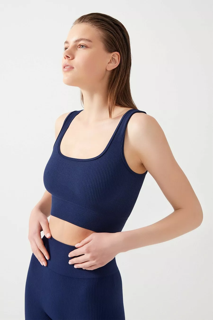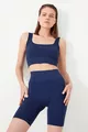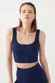 Women's Navy Ribbed Square Neck Crop Top Bustier