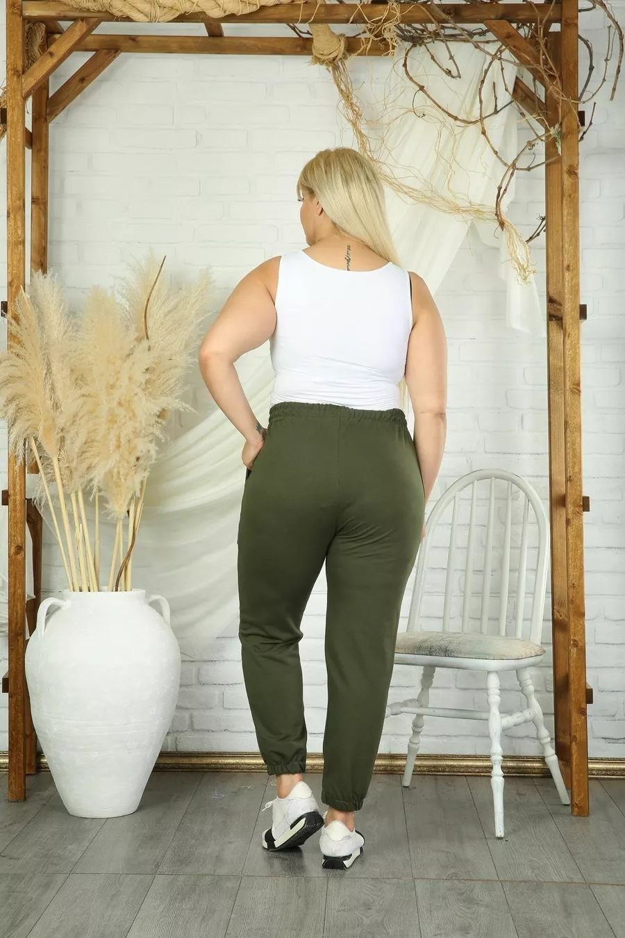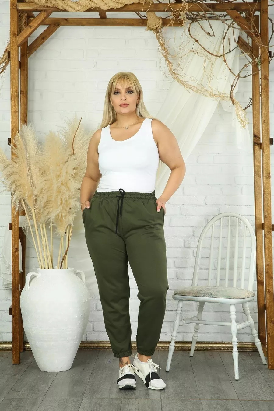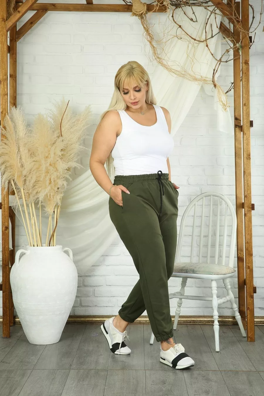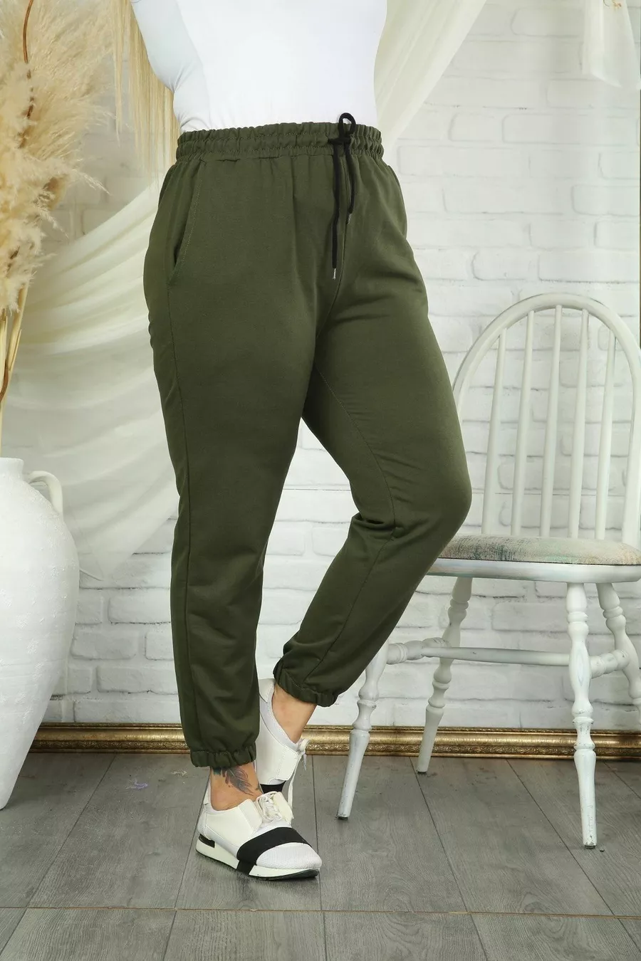 Women's Olive High-Waist Elastic Pocket Plus Size Sweatpants