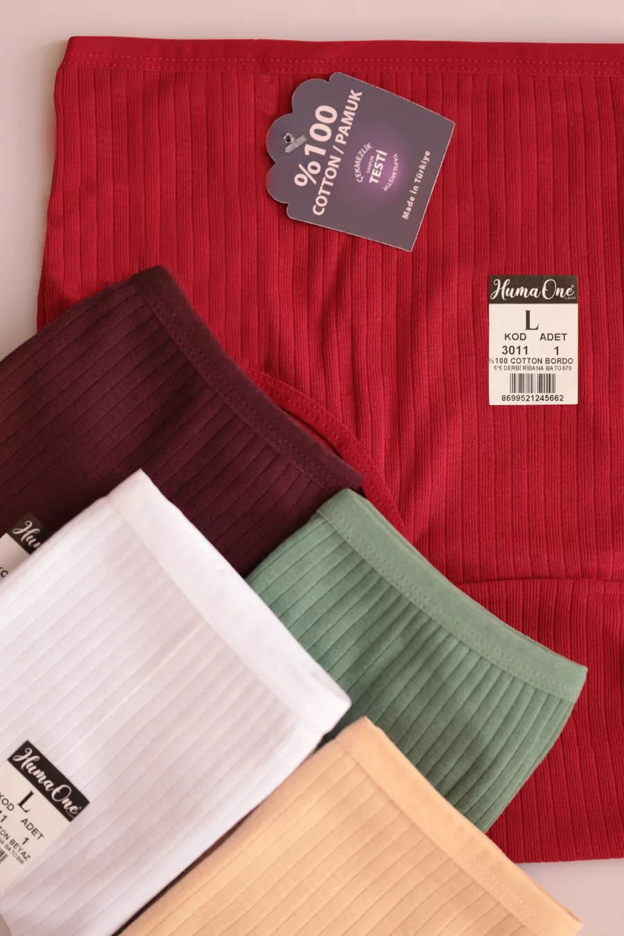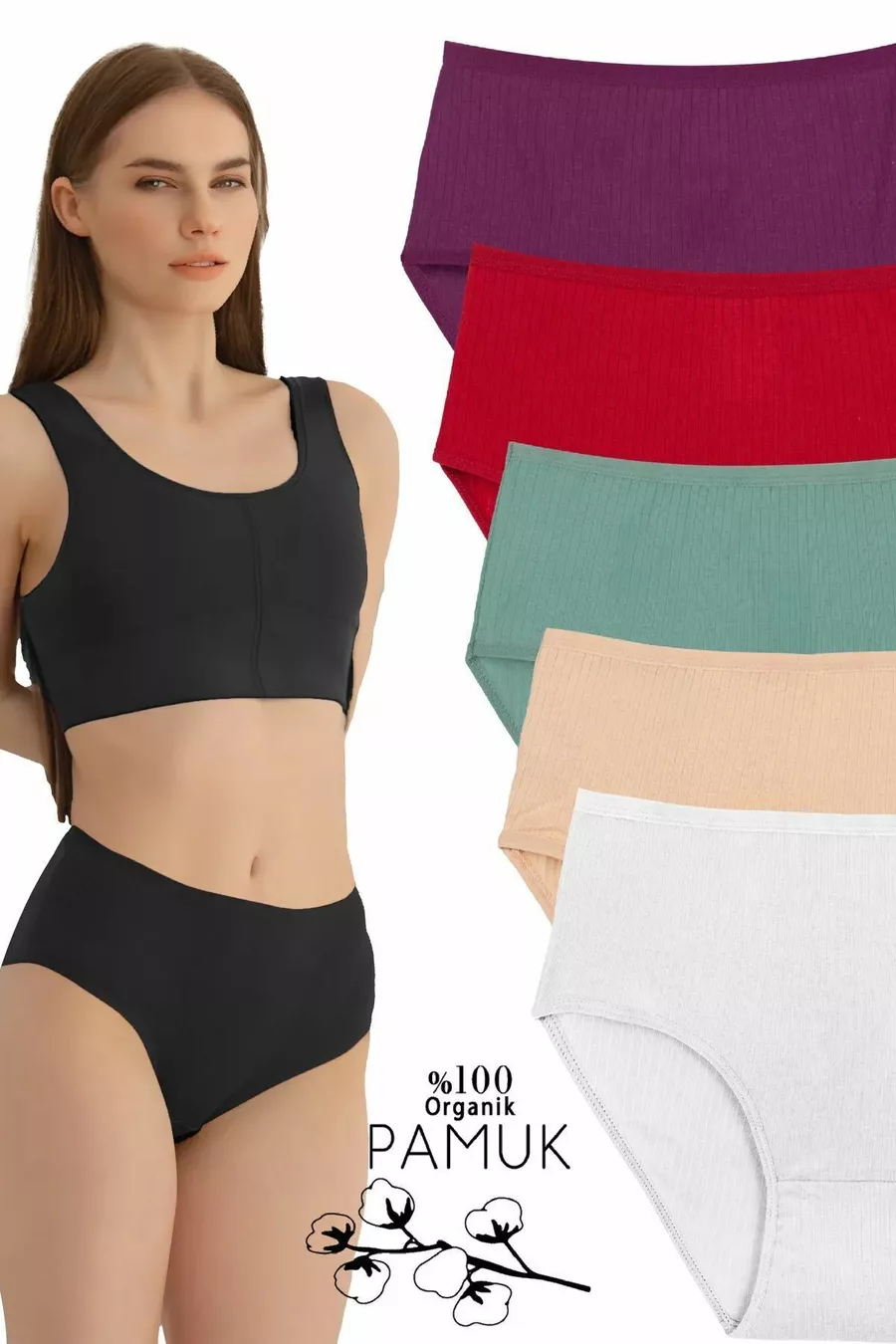 Women's % Cotton 5-Pack High-Waist Ribbed Panties in Purple, Green, Burgundy, White, Nude