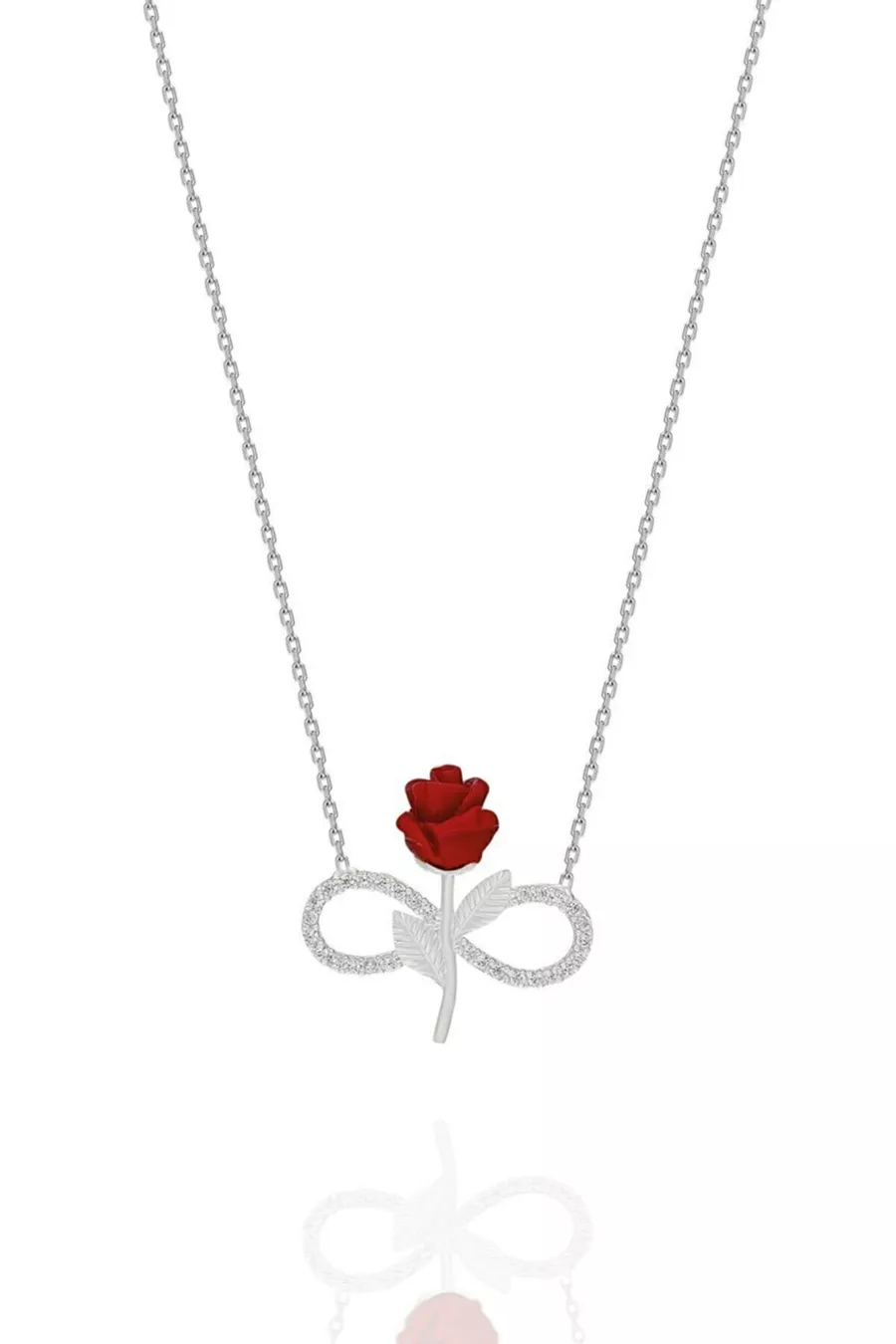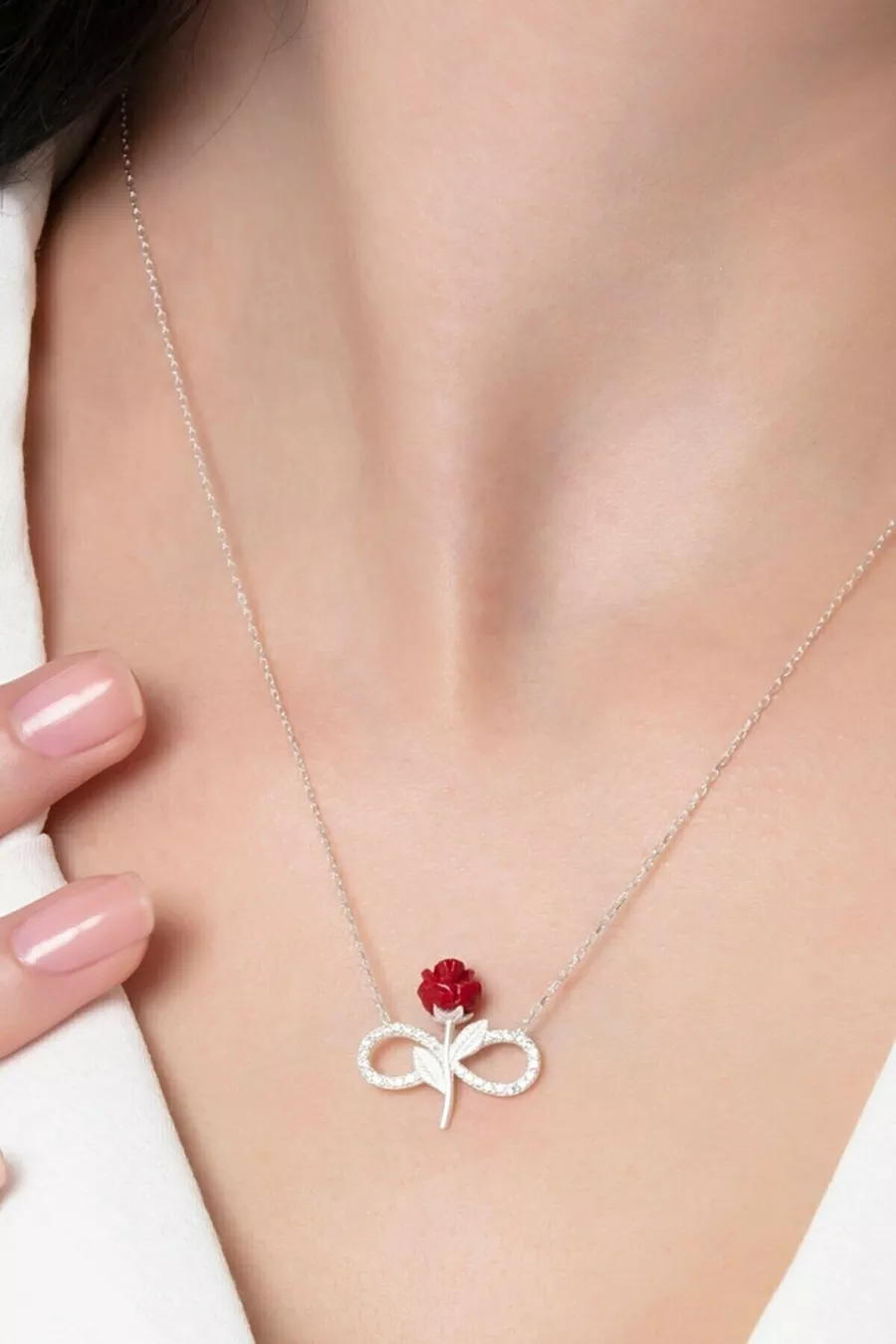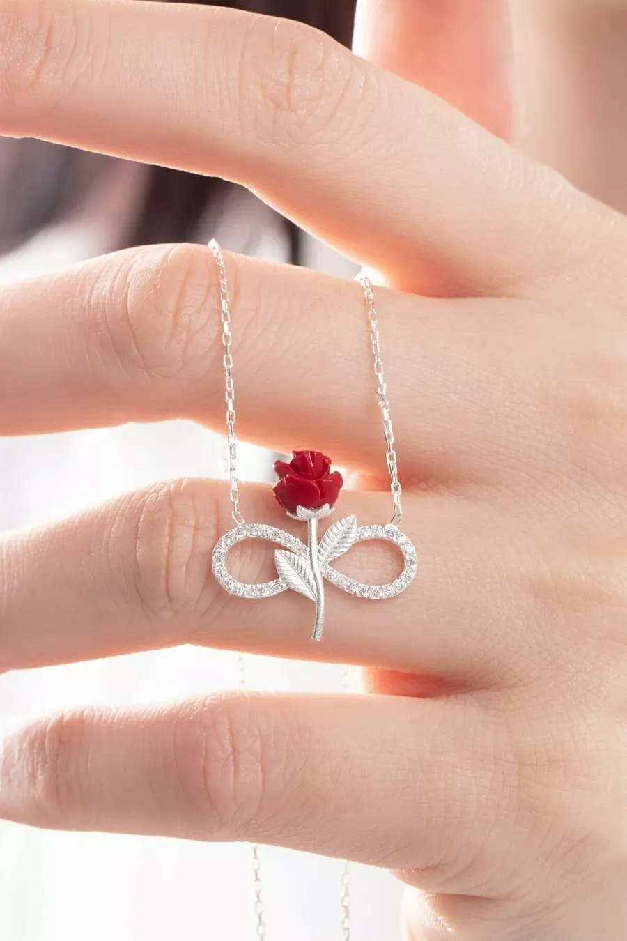 Women's Sterling Silver Chain White Cubic Zirconia Red Rose Infinity Necklace
