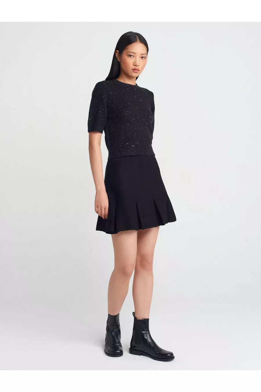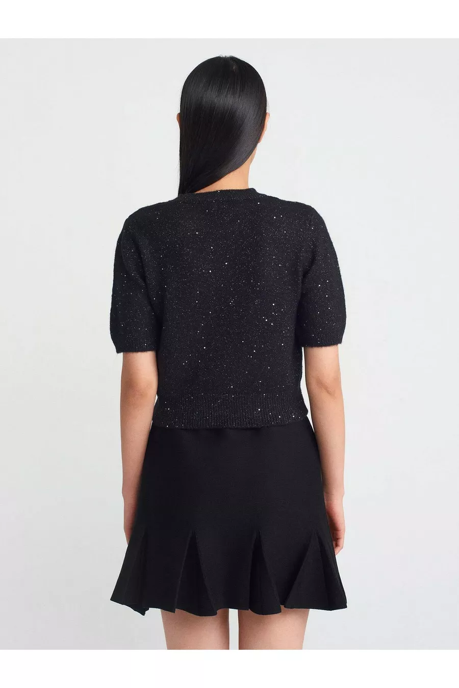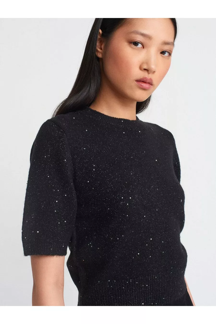 Women's Crew Neck Sequin Sparkly Soft Gray Short Sleeve Sweater