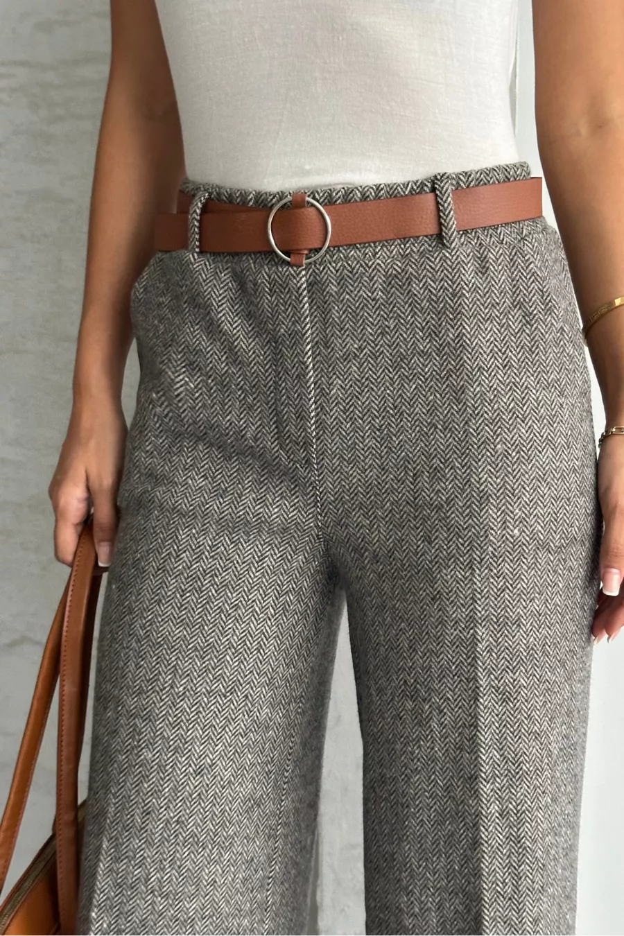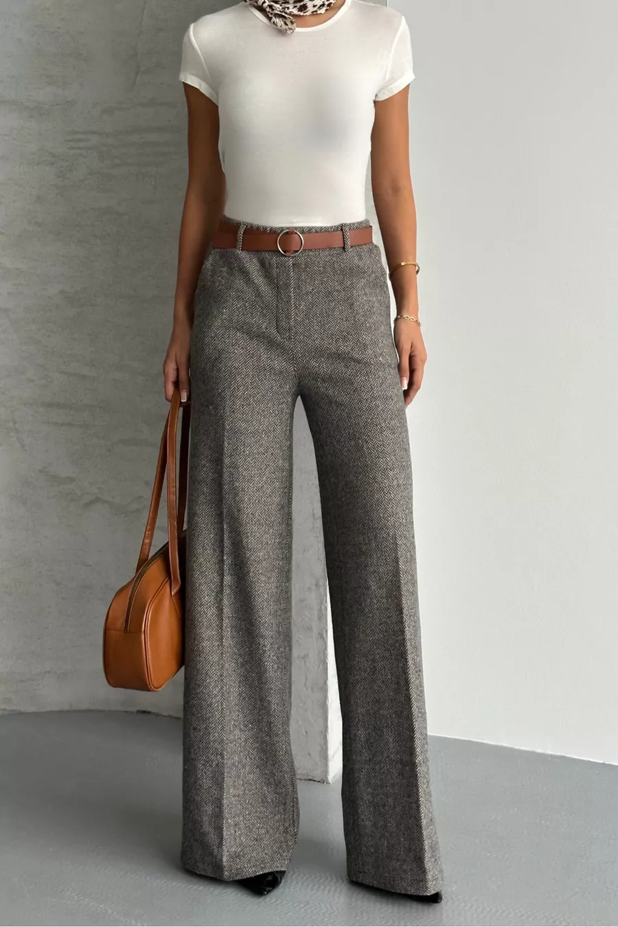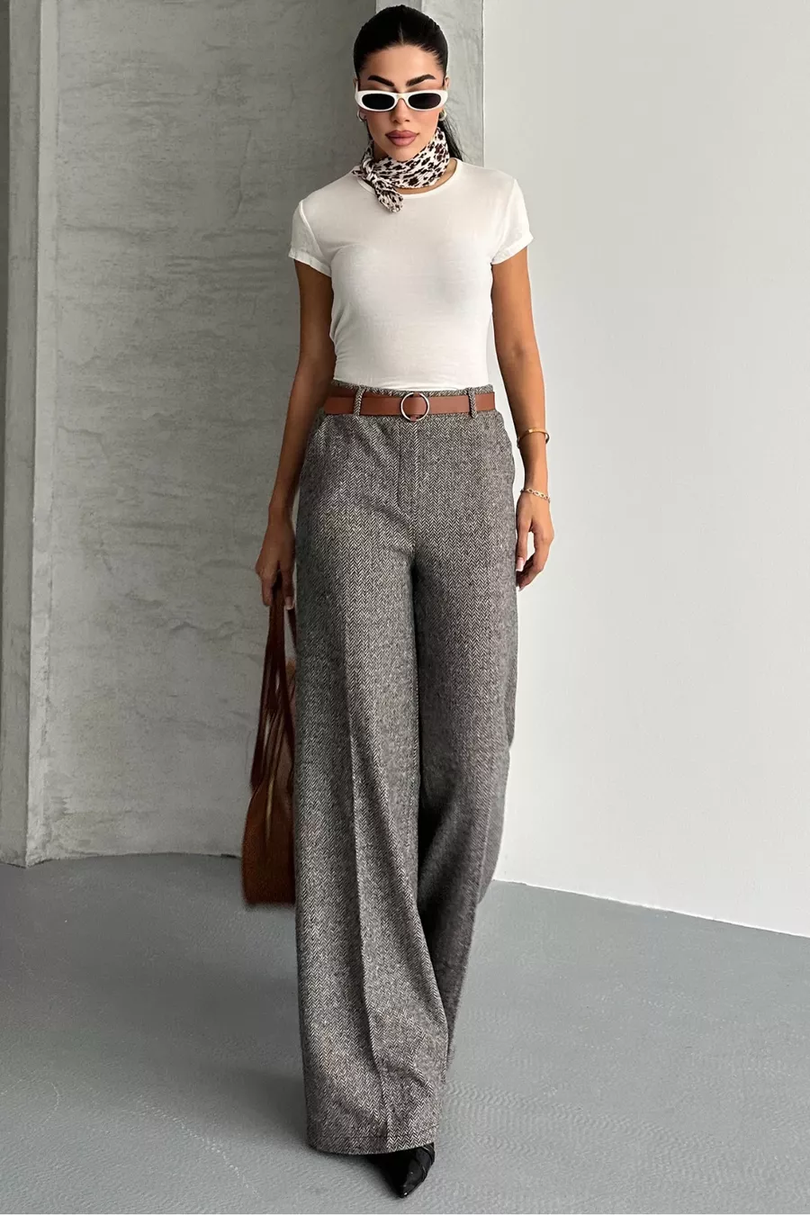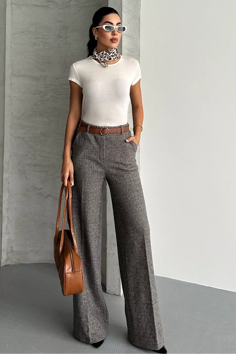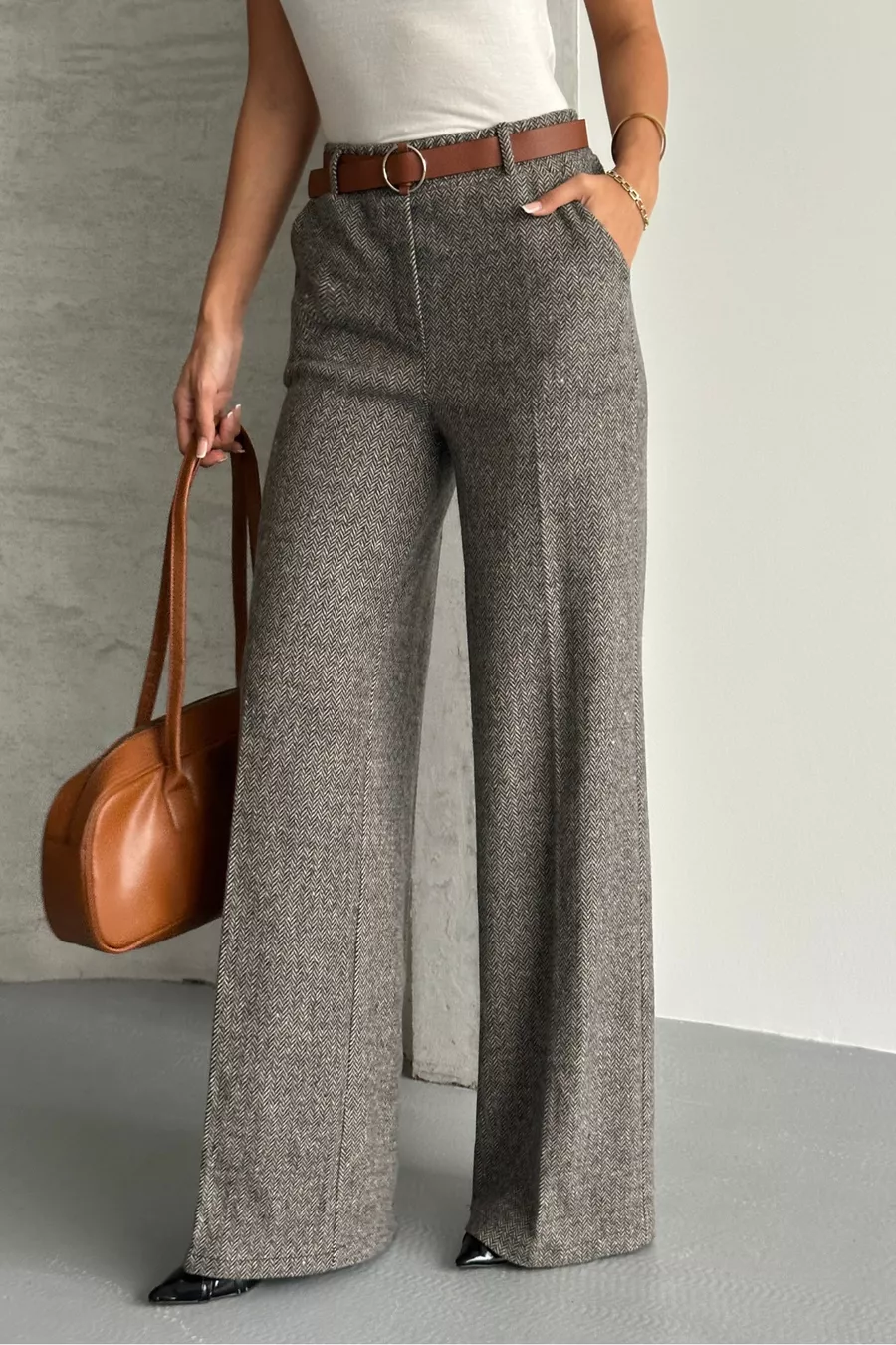Women's Patterned Wide-Leg Palazzo Pants with Pockets and Belt