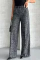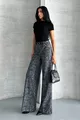 Women's Patterned Wide-Leg Palazzo Pants with Pockets and Belt