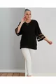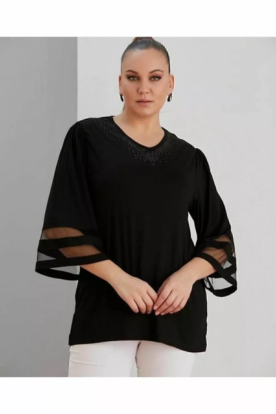 Women's Plus Size Blouse with Stone-Detail Collar and Three-Quarter Sleeves