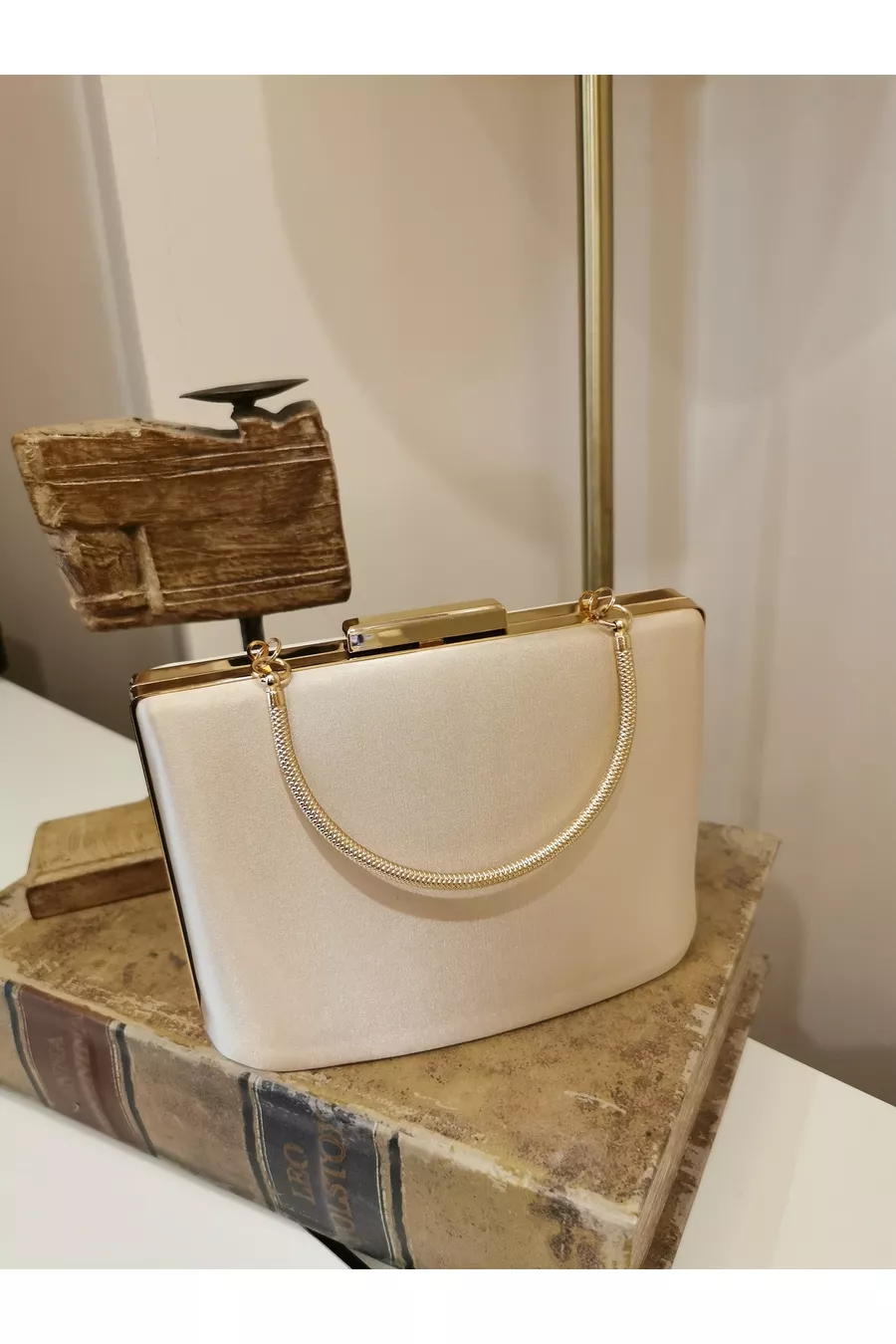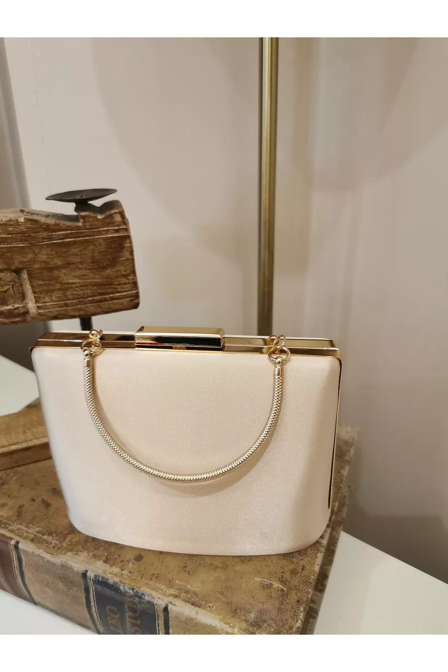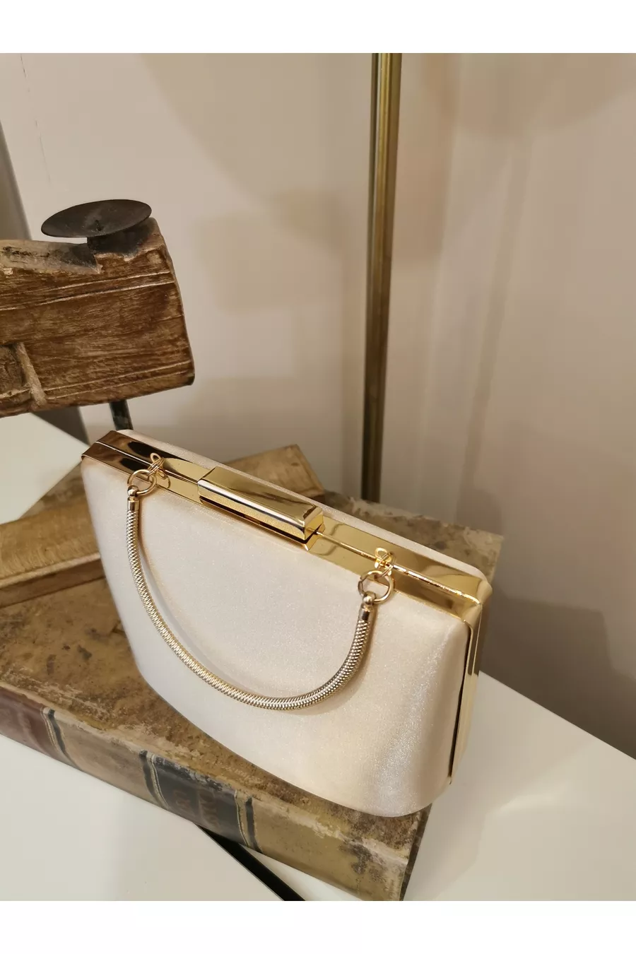 Women's Satin Skin Nude Gold Evening Clutch Bag with Accessories