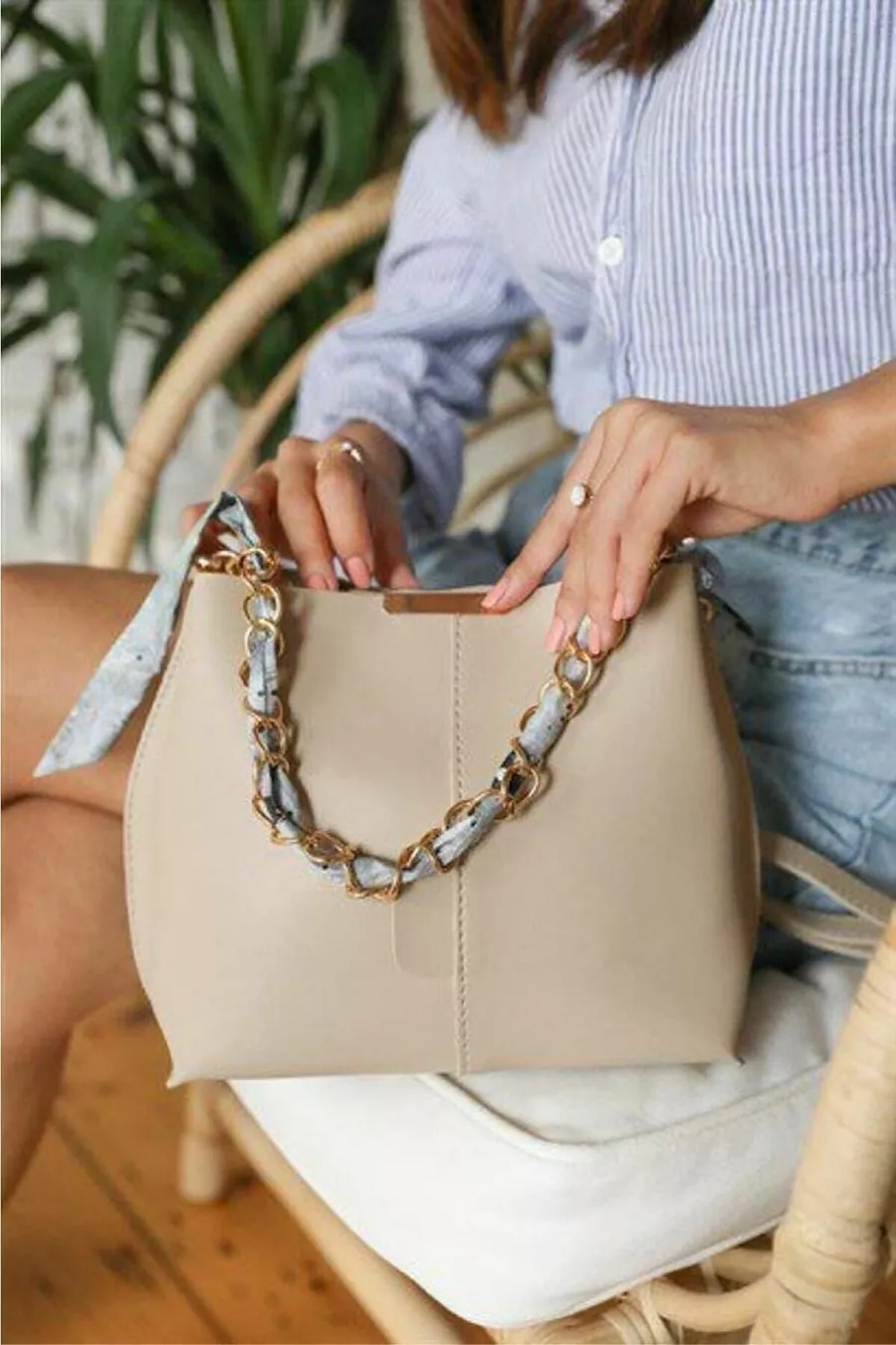 Women's Scarf Soft Leather Bag Beige With Chain Accessories
