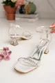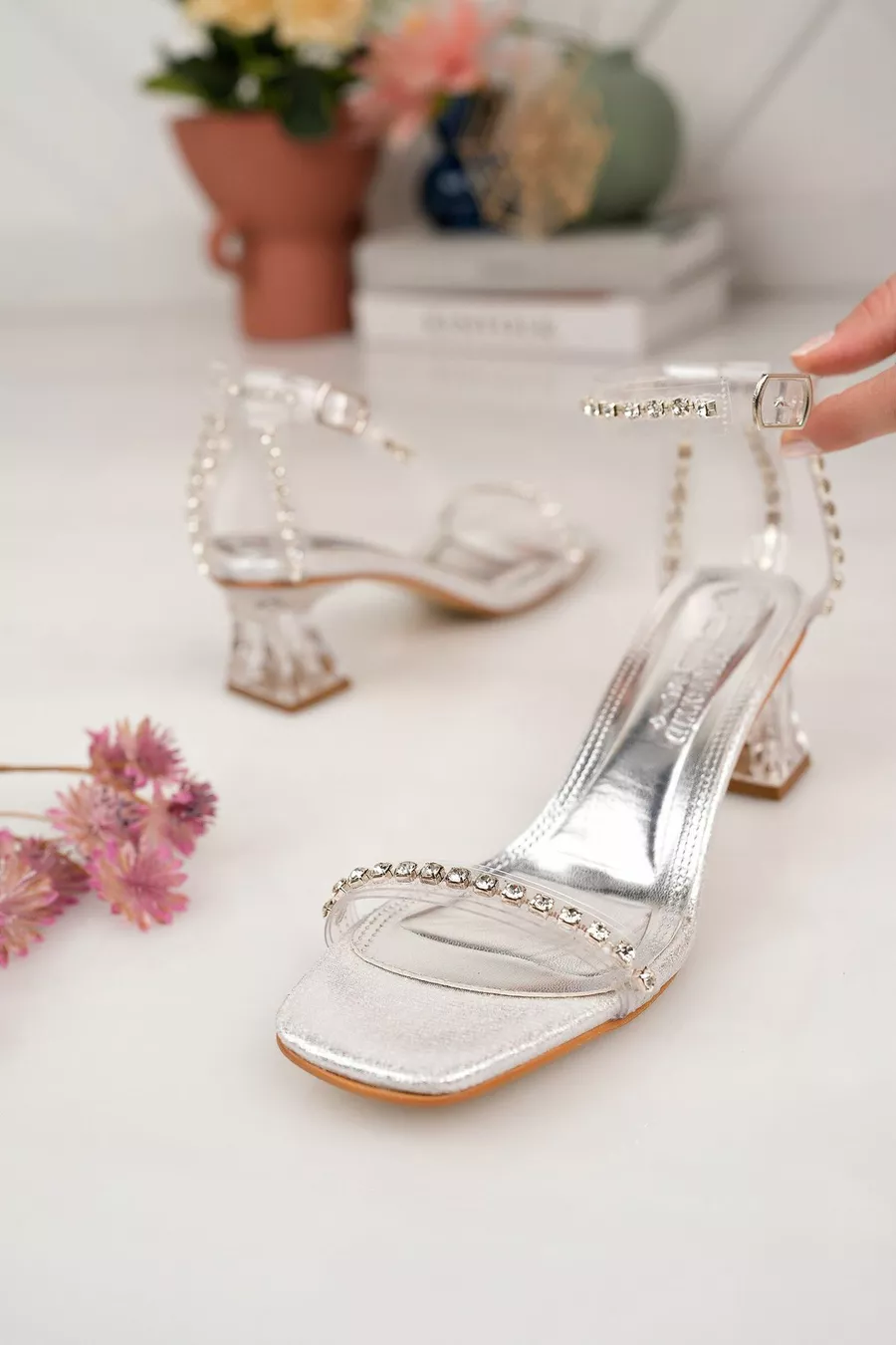 WOMEN'S SILVER TRANSPARENT STONE FRONT AND ONE BACK 3 WELTS 6CM TRANSPARENT THICK HEELS