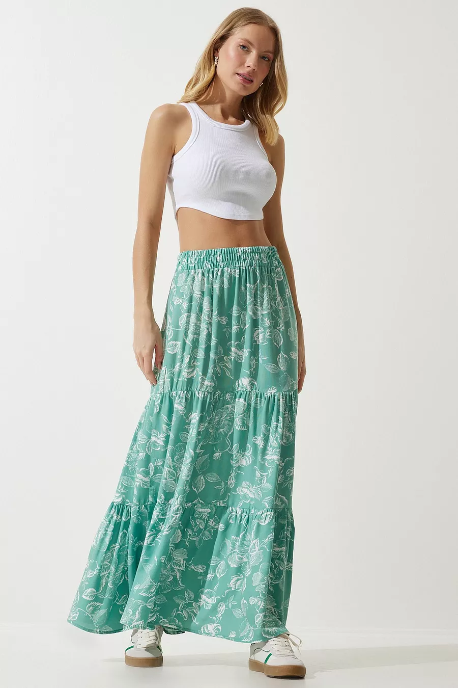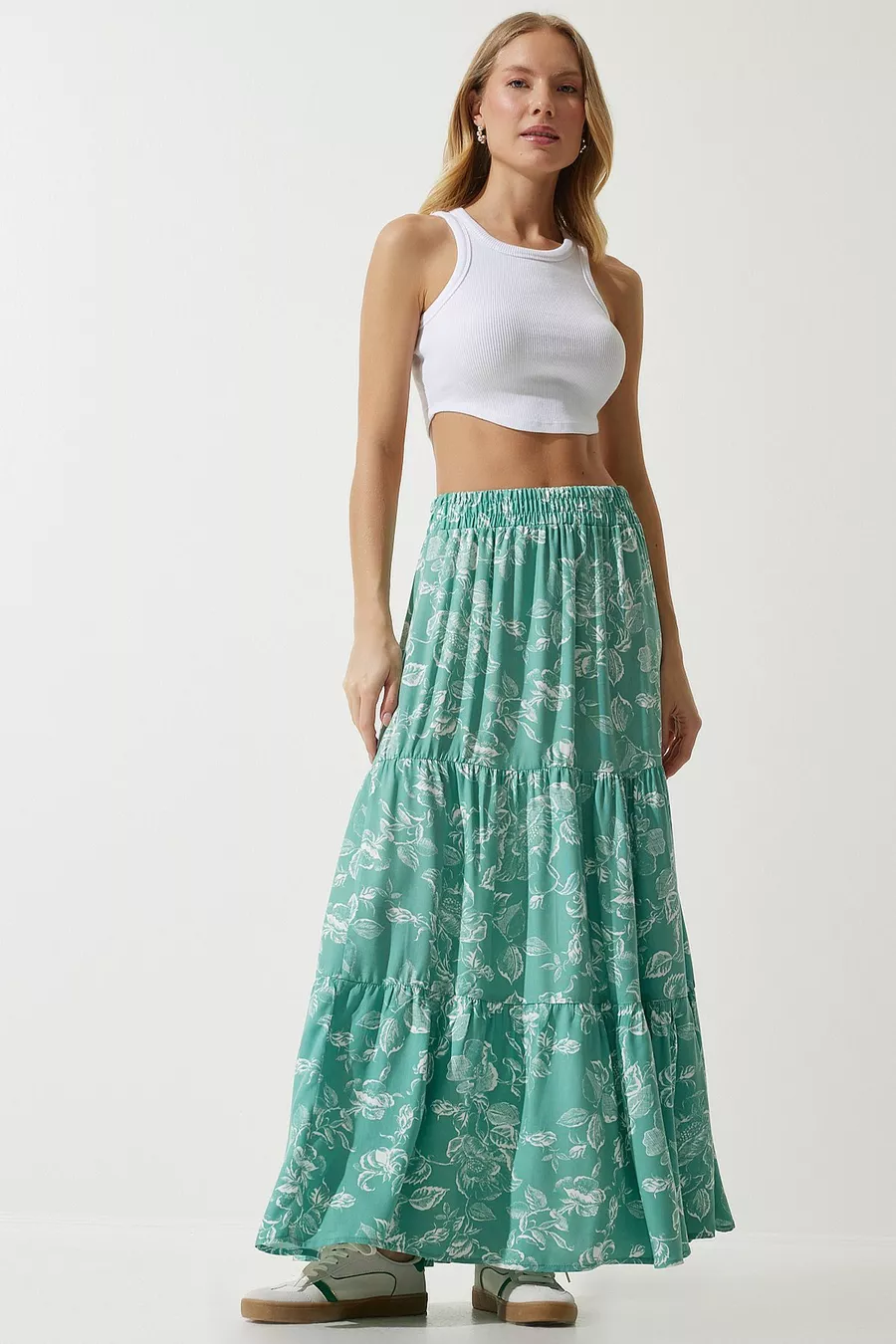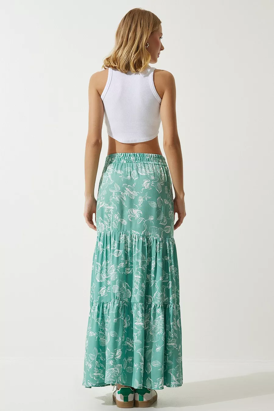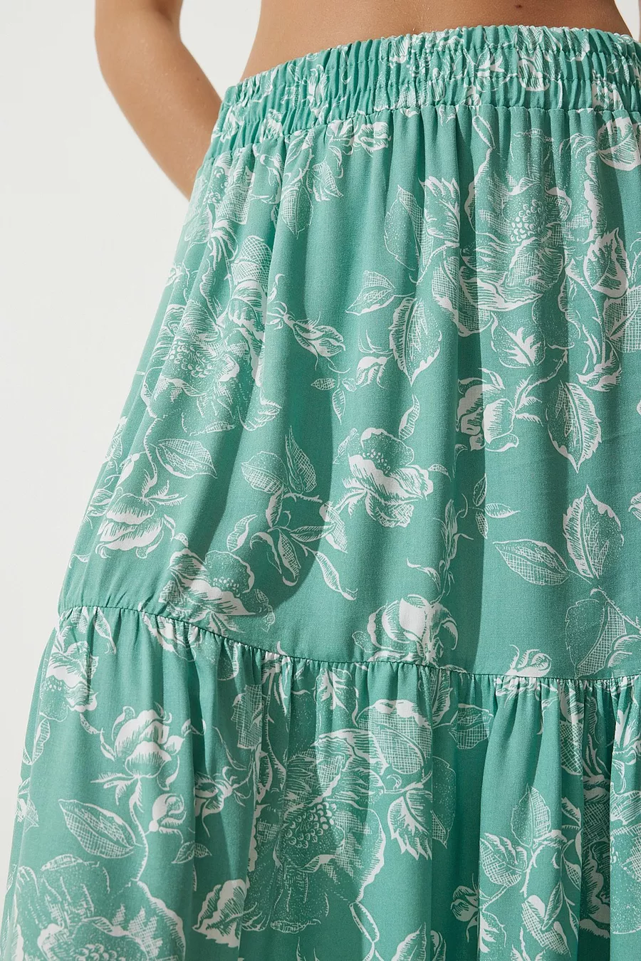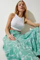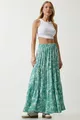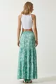 Women's Water Green Floral Patterned Flounced Viscose Skirt