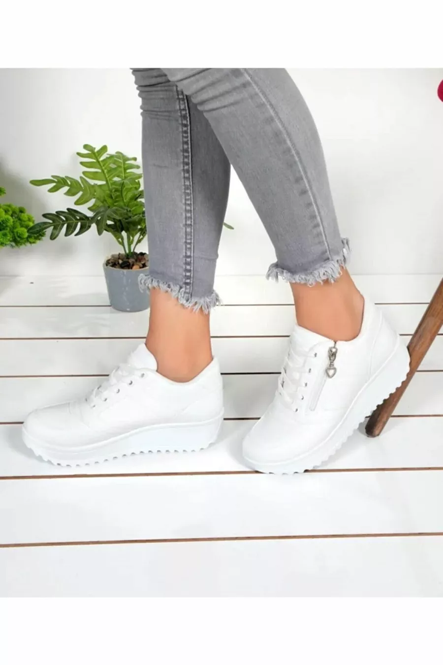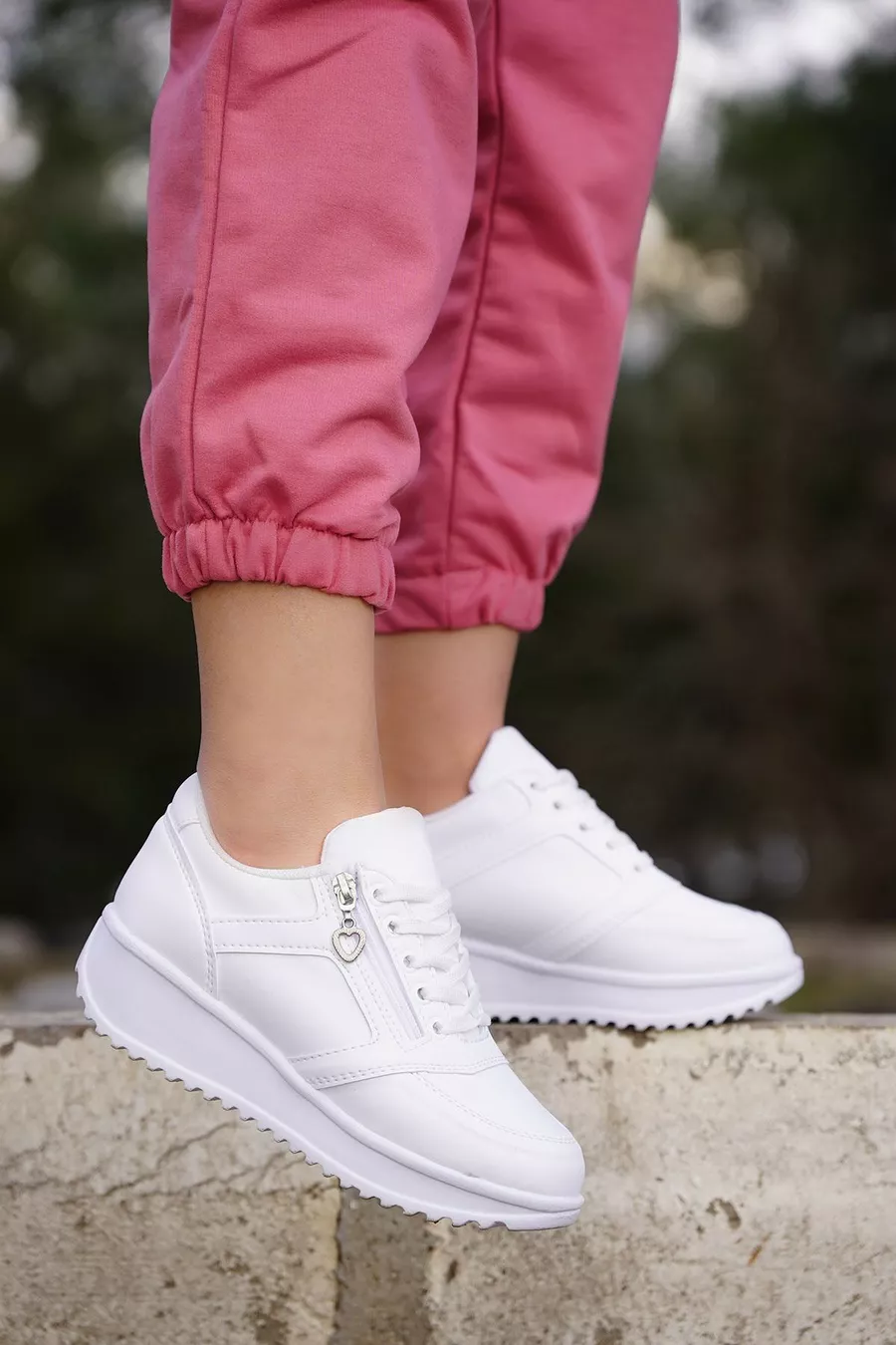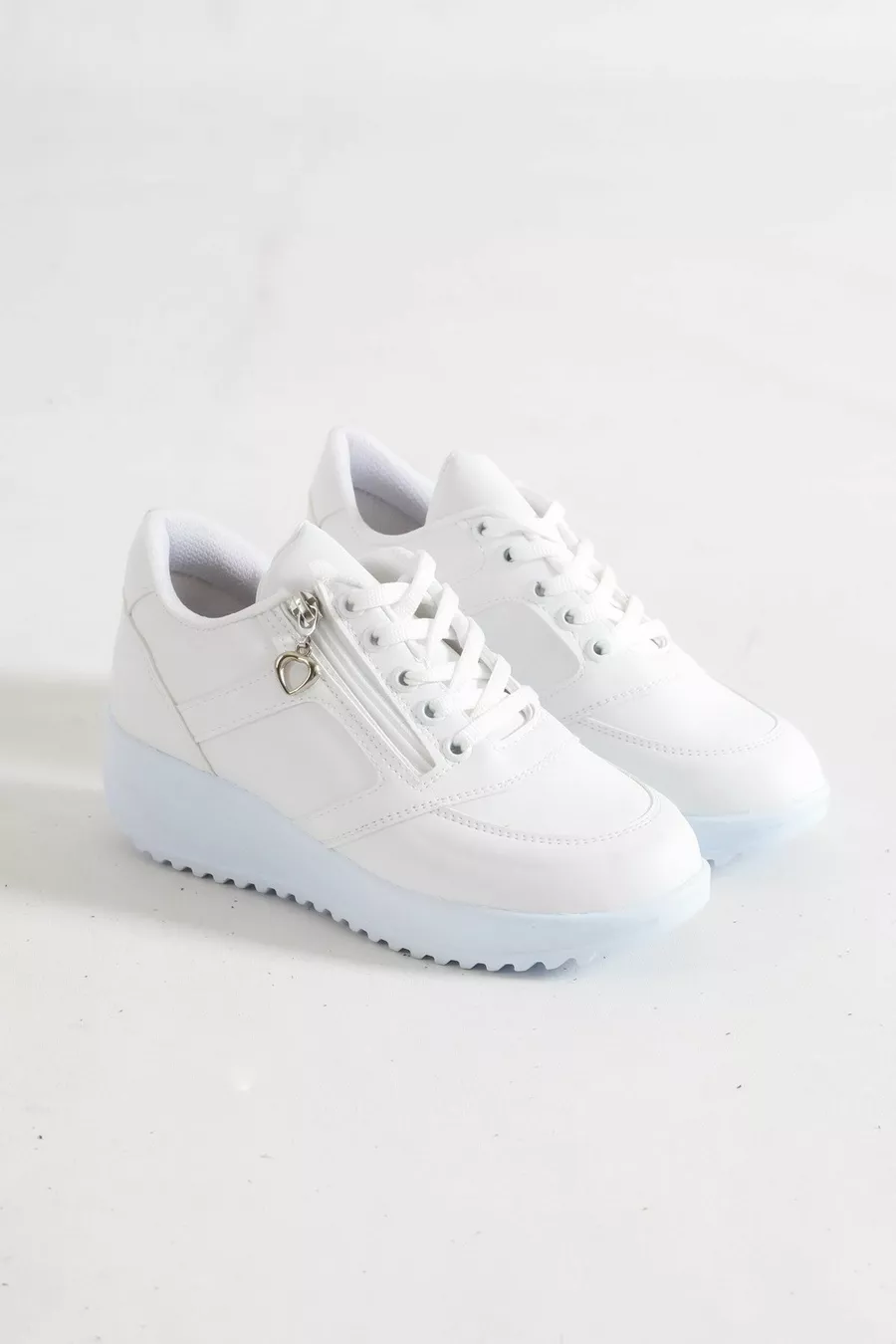 Women's White Skin Zipper Sneakers