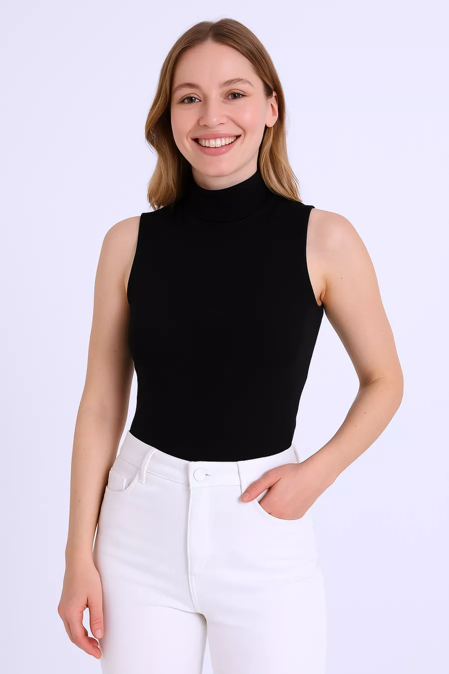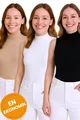 WOMEN'S ZERO SLEEVE HIGH NECK BODYSUIT 3-PIECE SET BLACK-WHITE-BEIGE