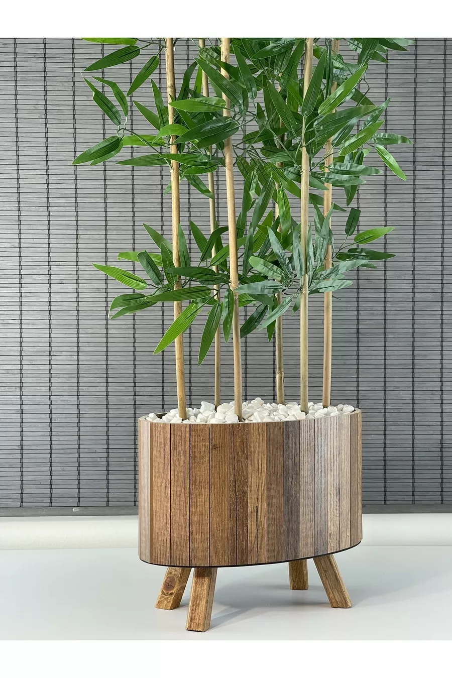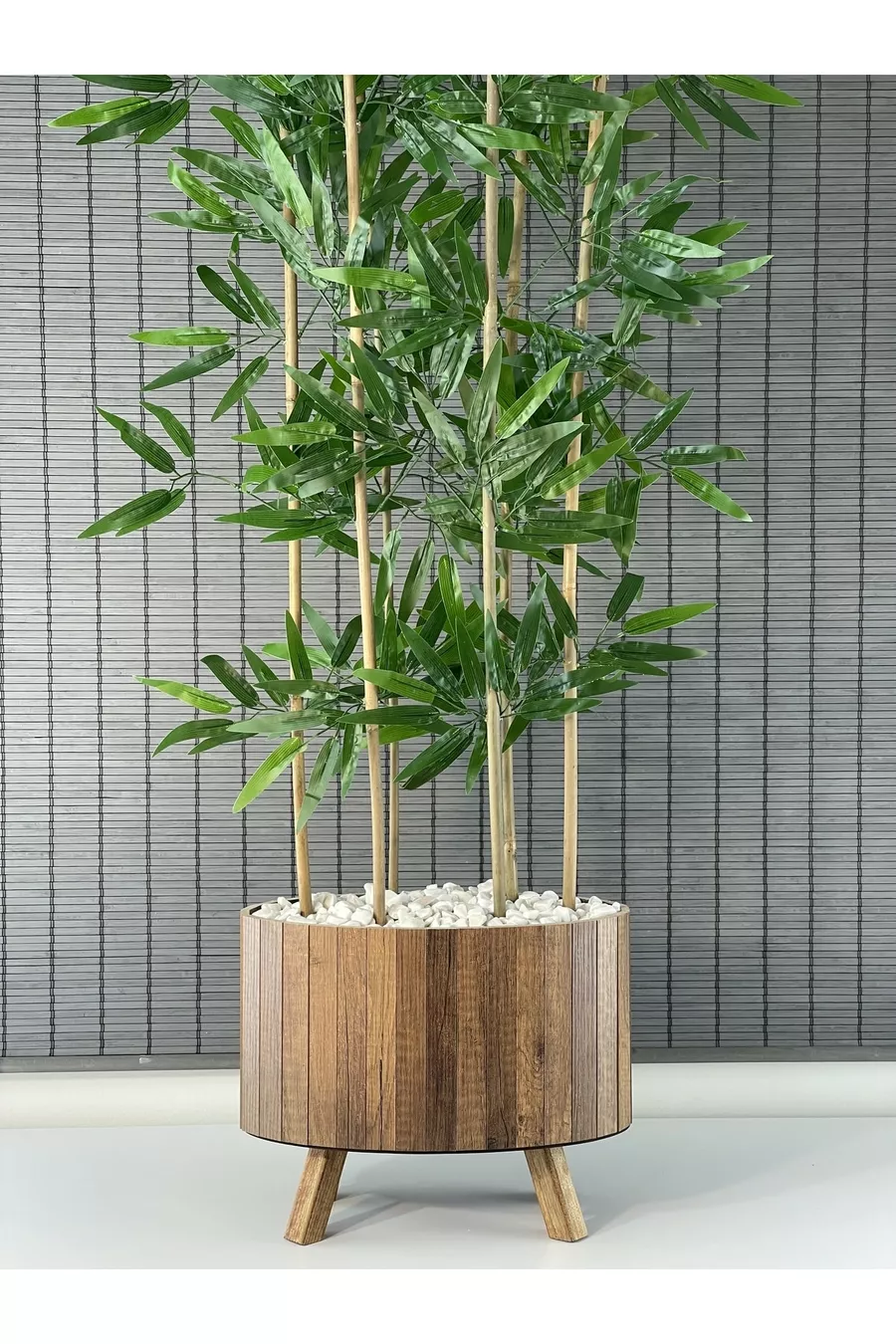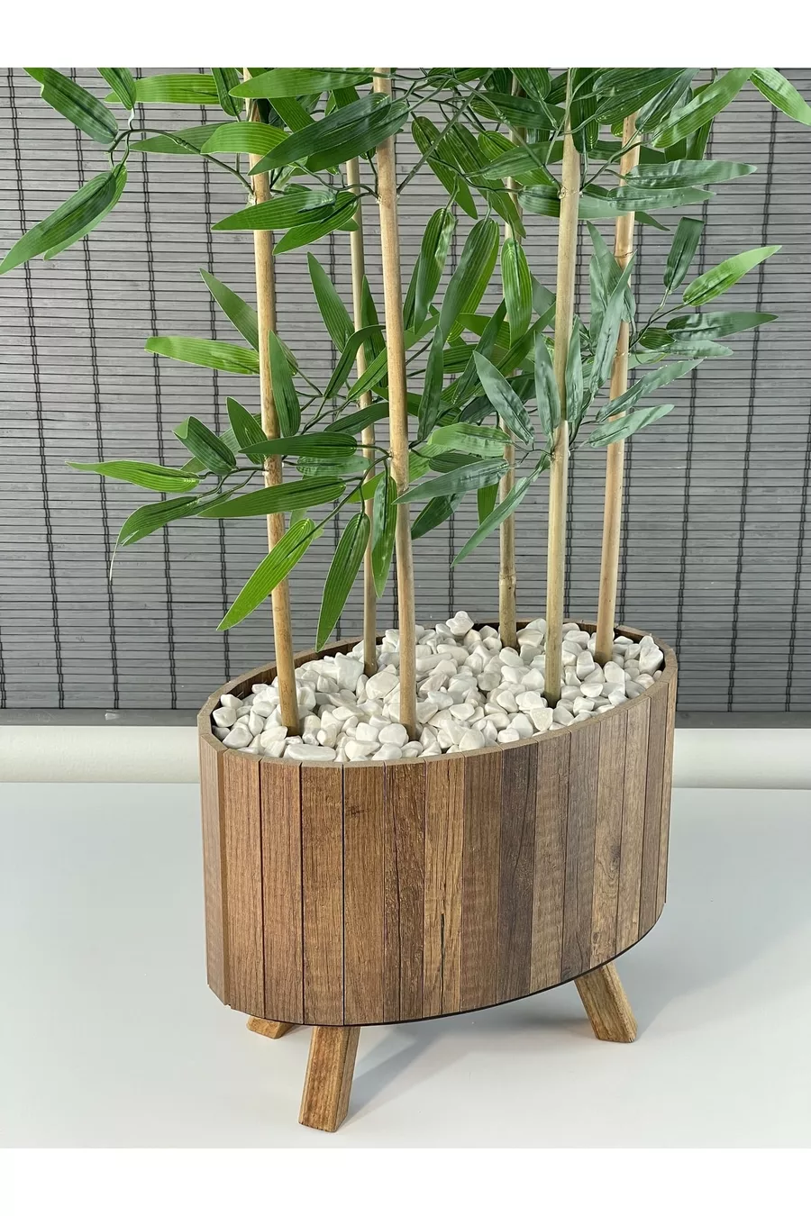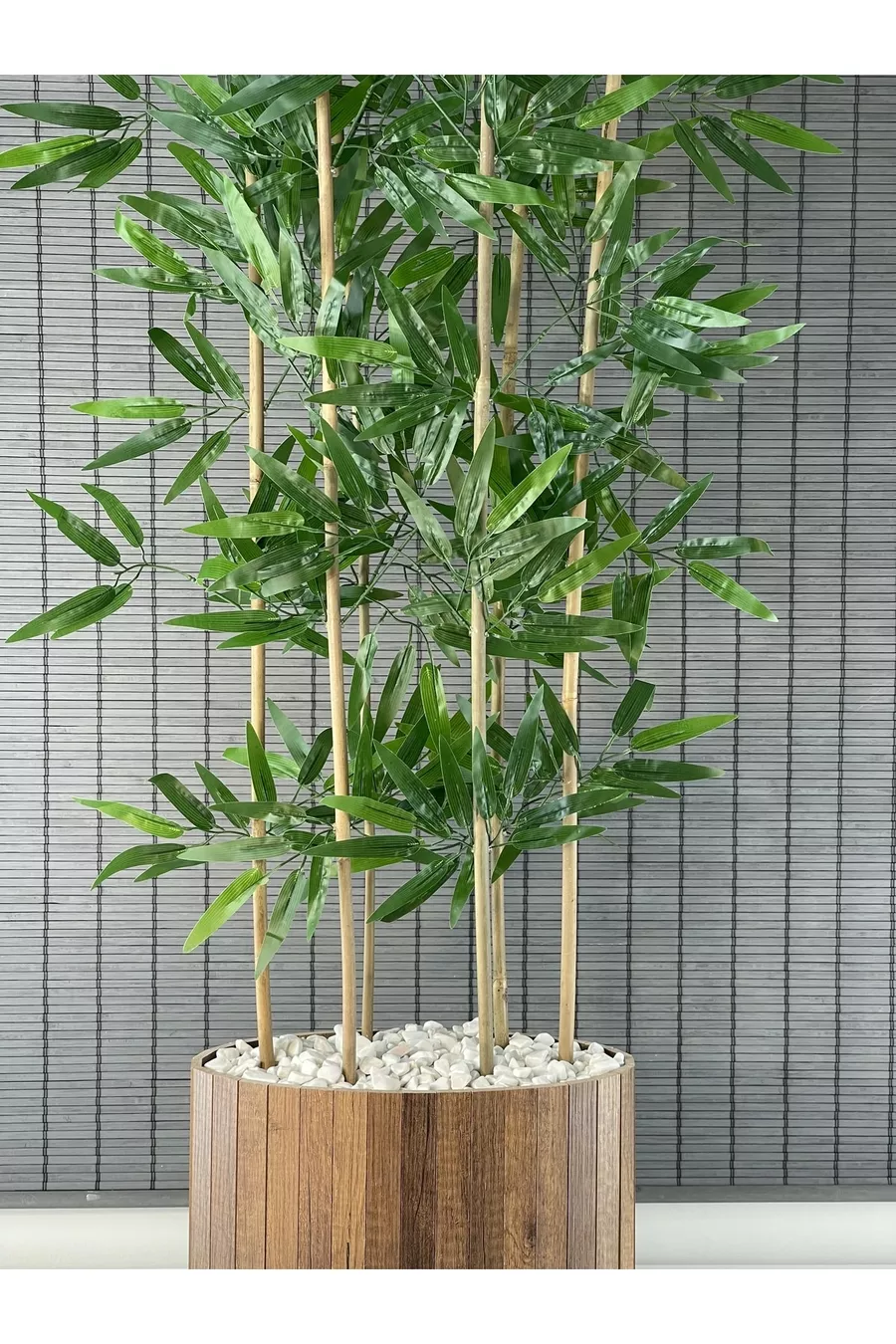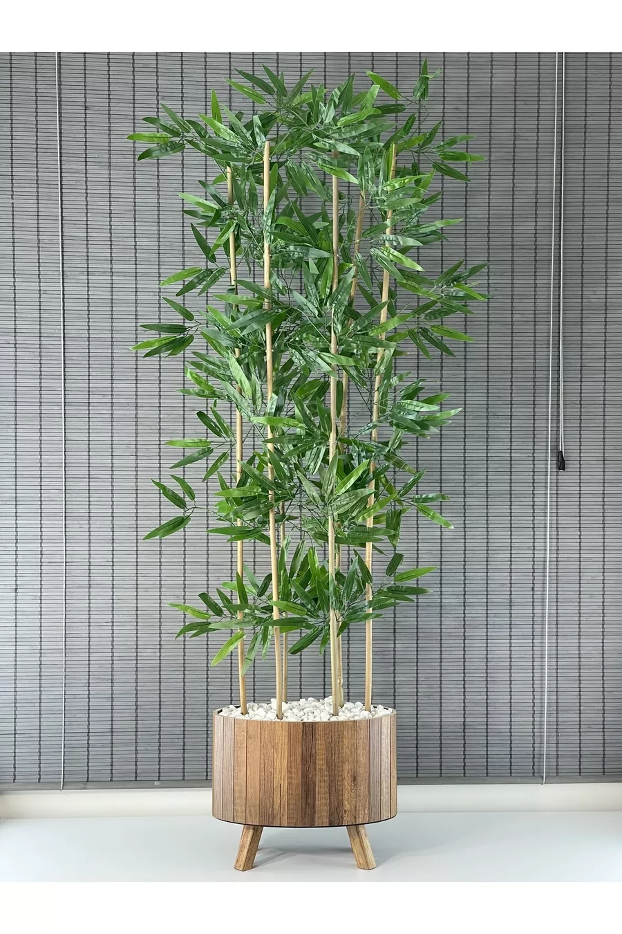 Wooden Potted Pedestal Ellipse Model Artificial Dense Leaf Decorative Bamboo Tree cm 6 Trunks