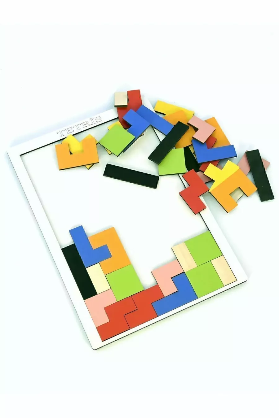 Wooden Tetris Block Puzzle Brain Toy Montessori Skill Development Handcraft Toy