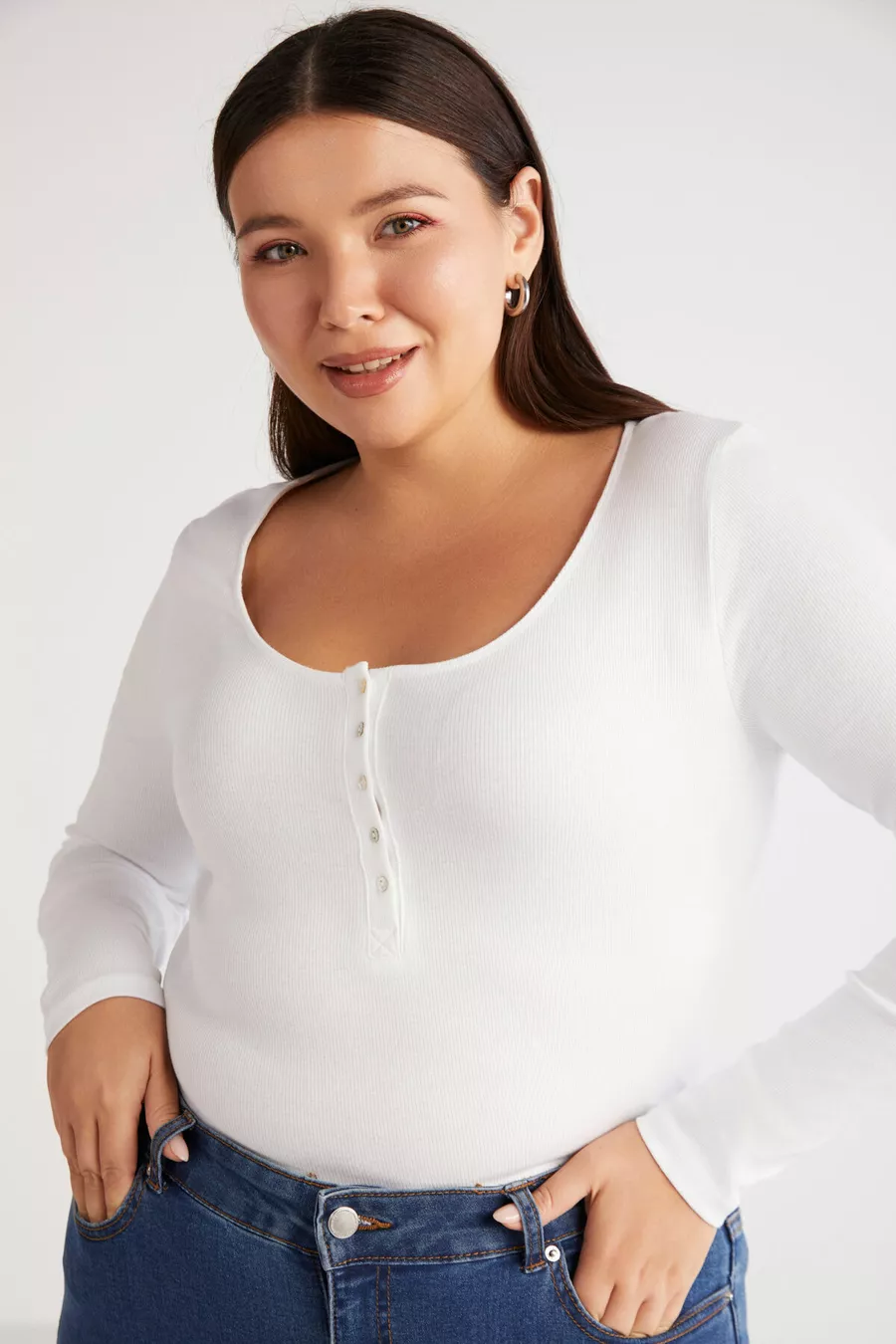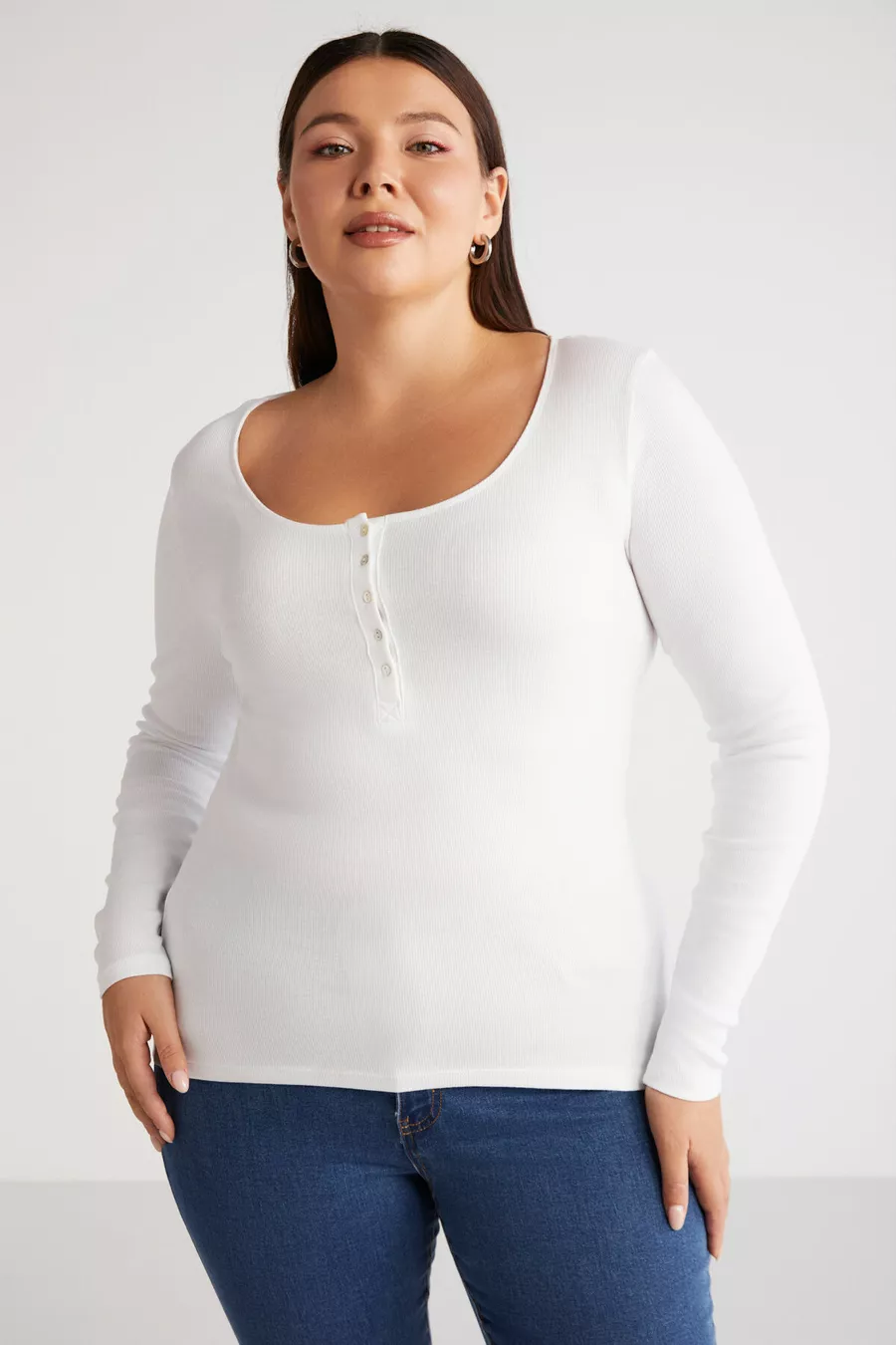 Pattern: Plain Fit: Plus Size Neck Type: Wrap Fabric Type: Knit Material: Cotton - Elastane Sleeve Type: Regular Sleeve Color: White Occasion: Casual/Daily Length: Regular Sleeve Length: Long Print/Embroidery Technique: Unprinted Persona: Cool & Comfort Pocket: No Pockets Weave Type: Ribbed Belt/Strap: Without Belt Sustainability Detail: No Silhouette: Wrap Material Composition: 95% Cotton, 5% Elastane Thickness: Medium Washing Instructions: T1 Collection: Plus Size Package Content: Single
