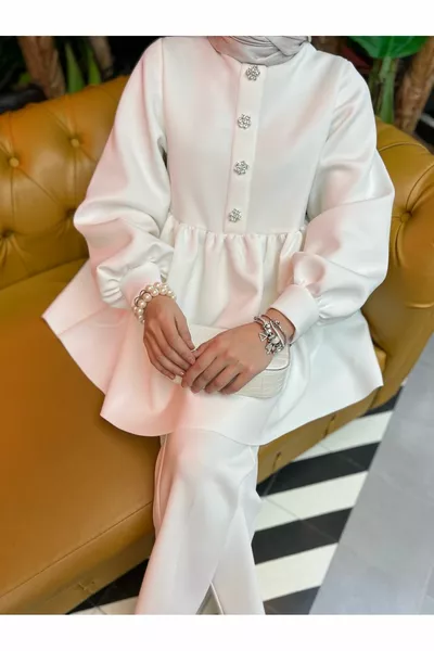 Meraviglioso completo Sandy con pantaloni larghi a pieghe e tunica