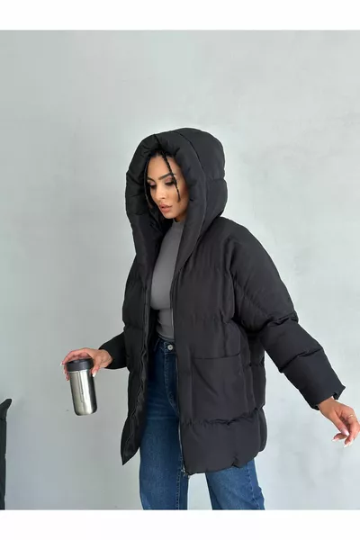 Cappotto invernale con cappuccio oversize impermeabile e antivento nero da donna e cappotto e parka -