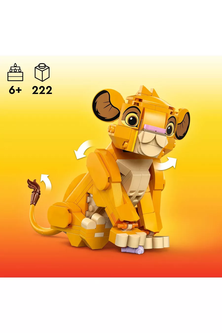Serie: Disney™ Colore: Multicolore Numero di pezzi: 222 Età: 6+ anni Altre caratteristiche: Figurina articolata di Simba con testa girevole, gambe e coda mobili, una foglia e 4 'insetti' come cibo Origine: HU Caratteristica: Altro