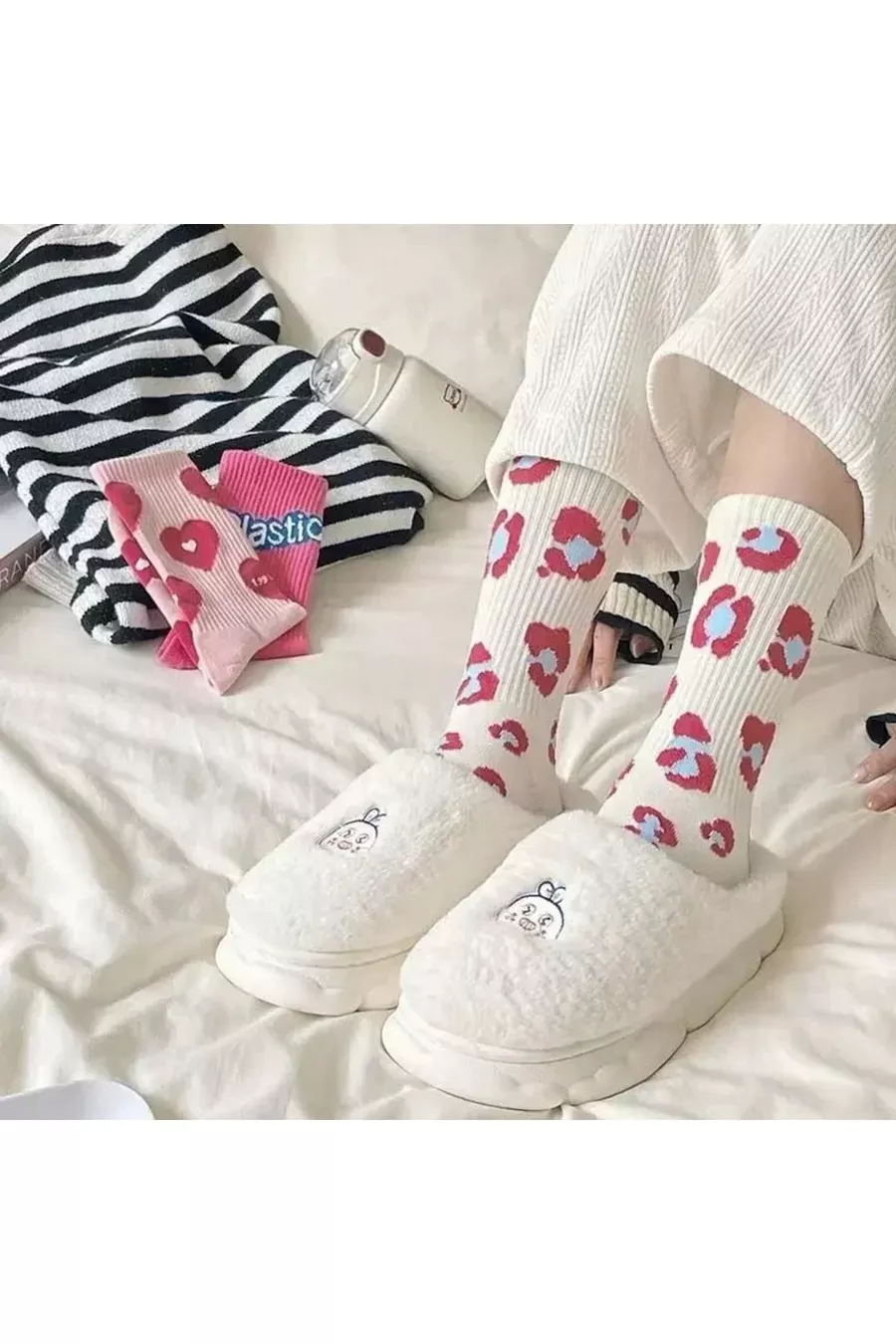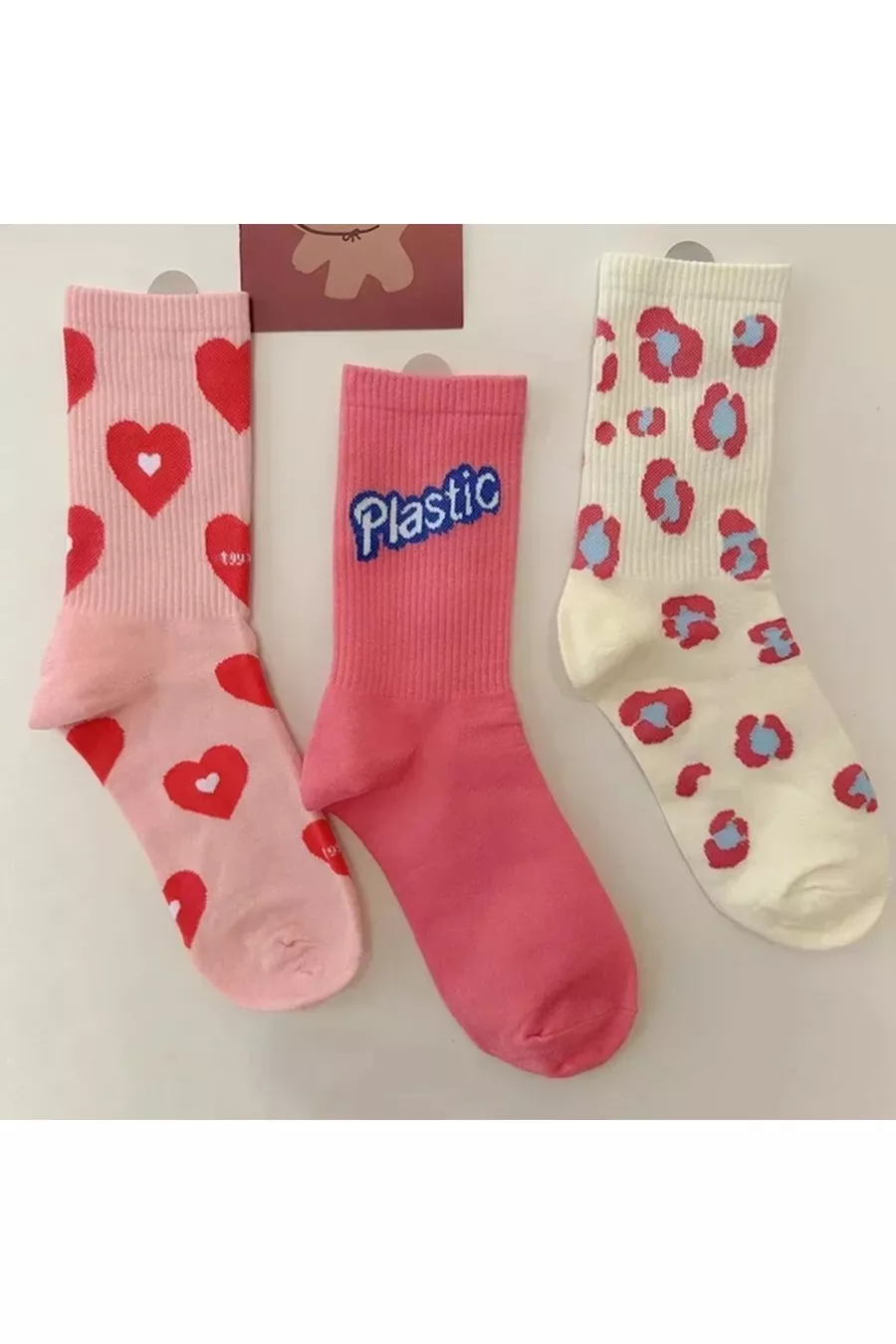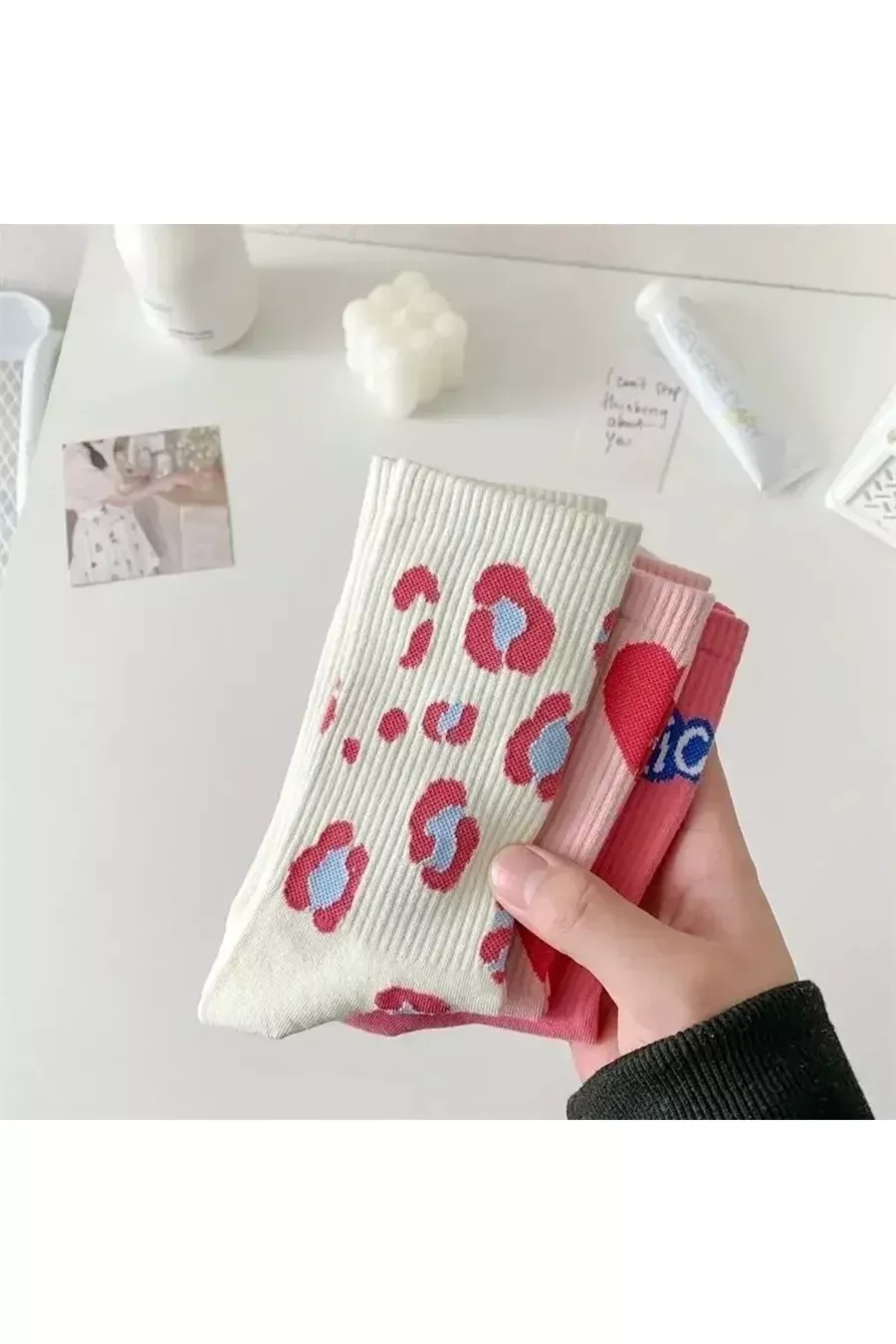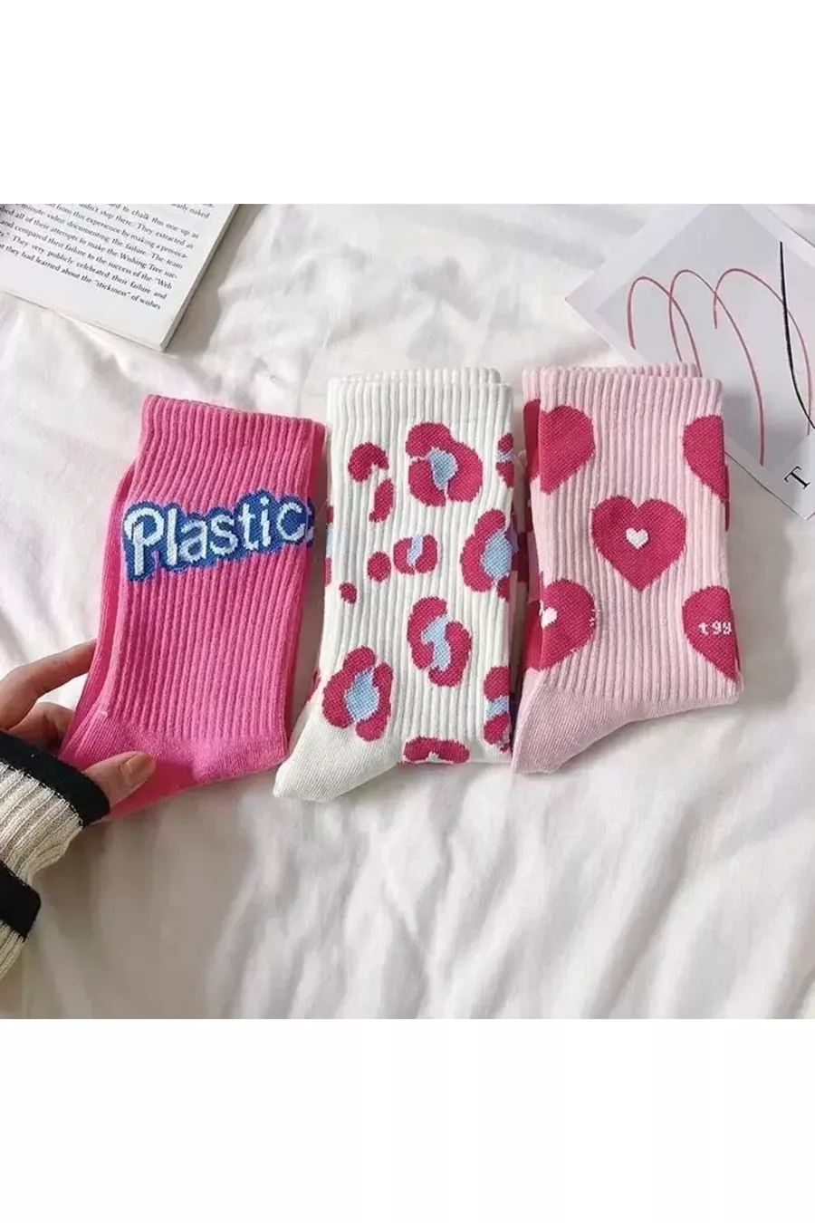 3 Paia di Calze da Donna Senza Cuciture Multicolori con Lettere d'Amore / Fantasia a Cuori, stile College