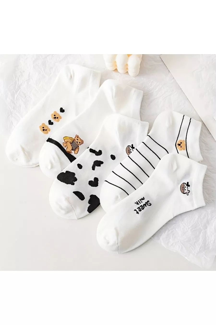 5 Paia di Calze da Donna con Fantasia Bianca a Panda / Mucca