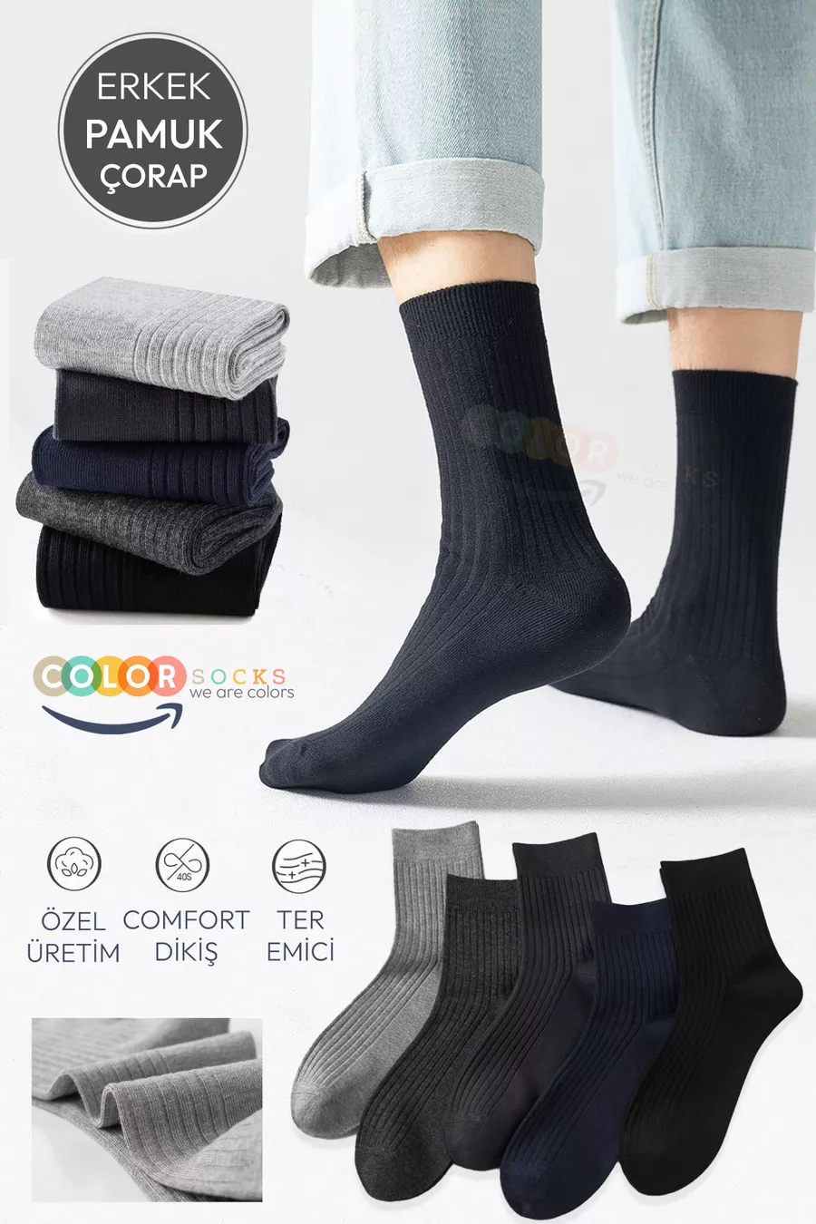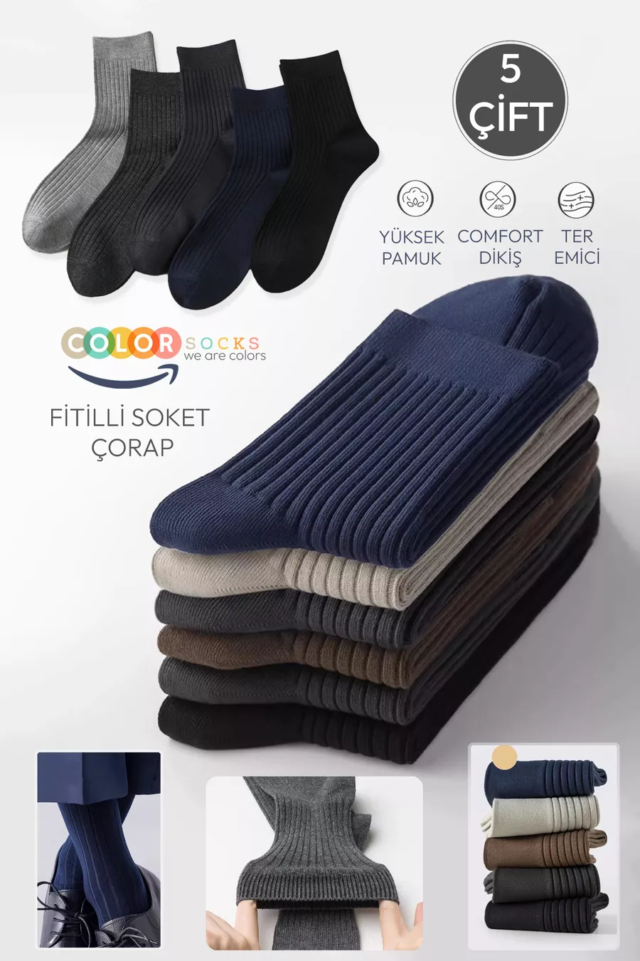 5 Paia di Calzini da Uomo Basic in Cotone con Costine (Calzini Estivi)