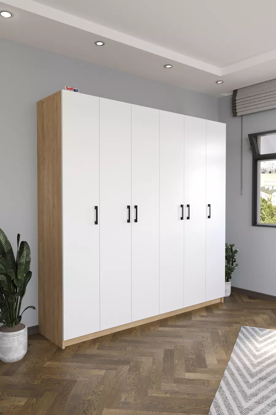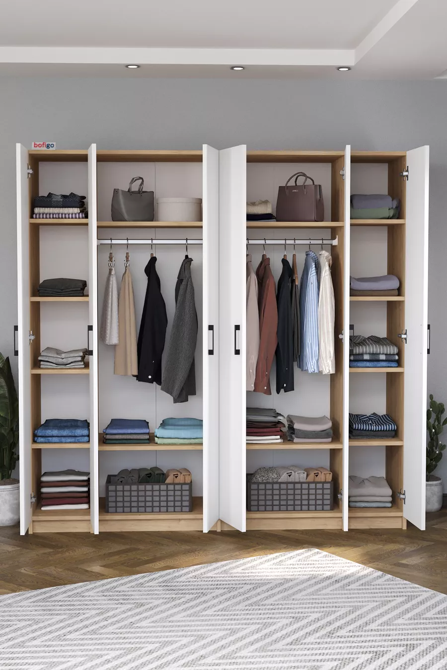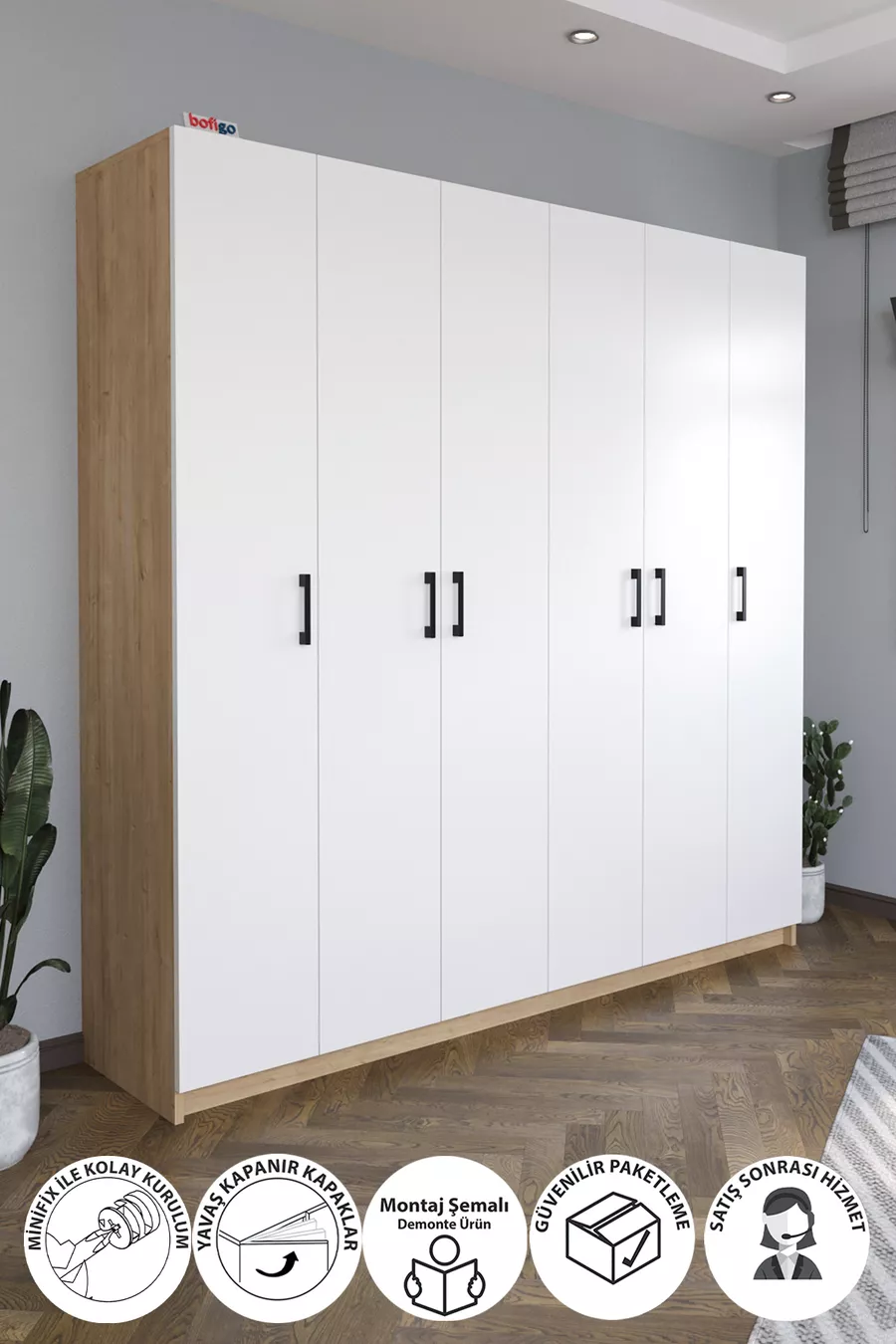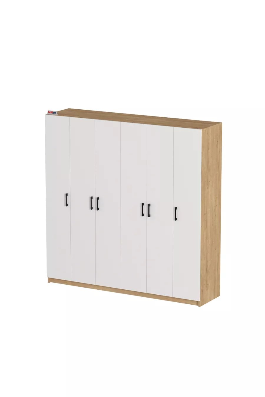 6 Kapaklı Raflı Gardırop Elbise Dolabı 6 Kapaklı Gardırop Smyrna Safir Meşe Beyaz