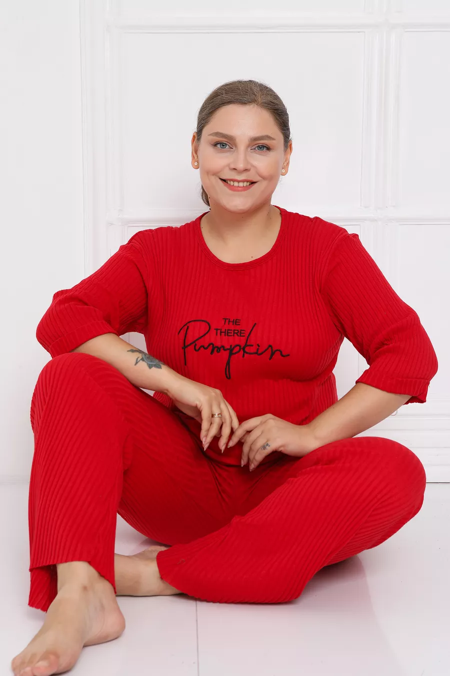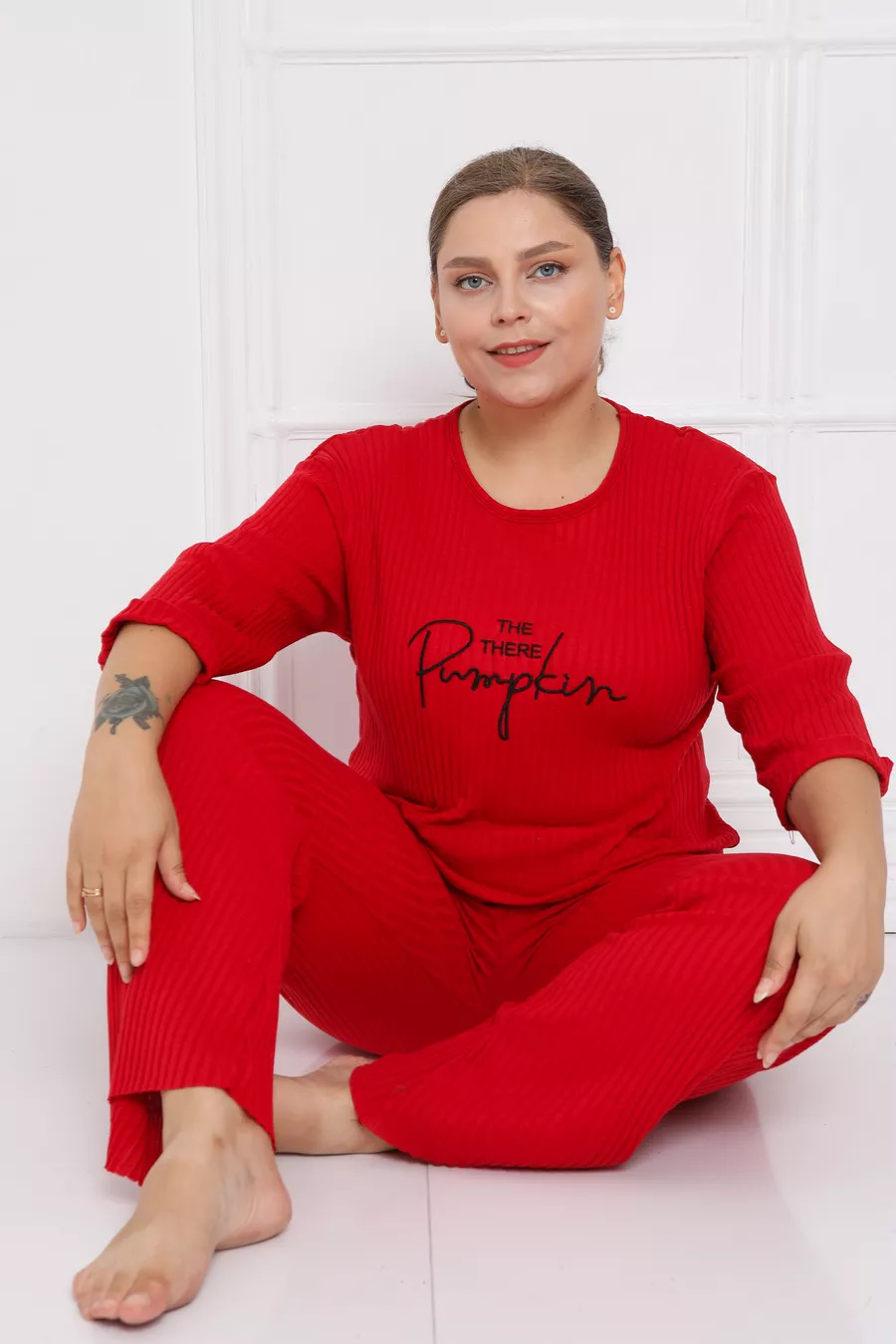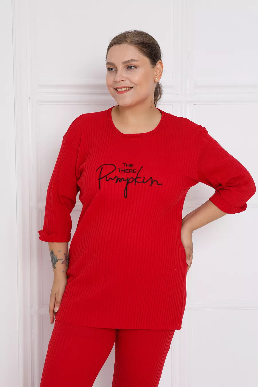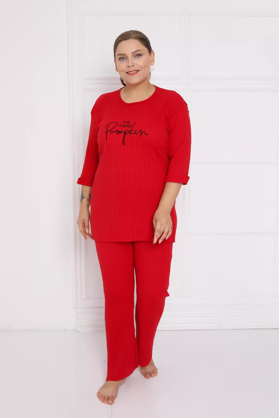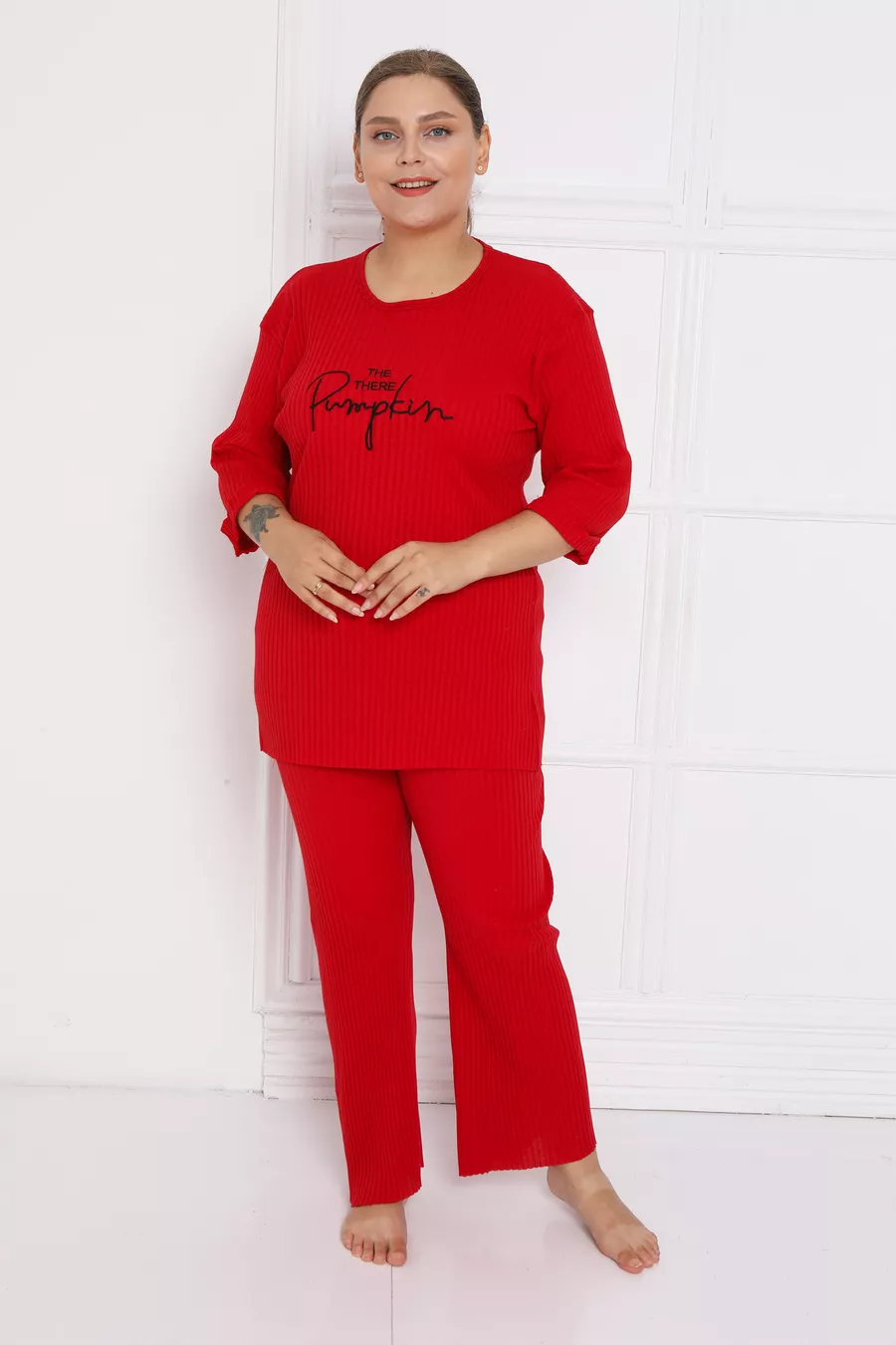 Abbigliamento da casa taglia grande nuova stagione in cotone con gamba a campana e costina