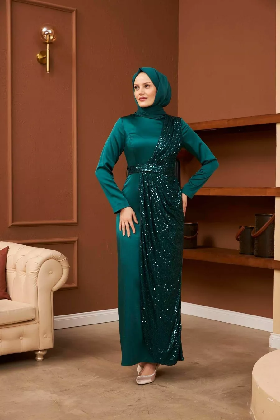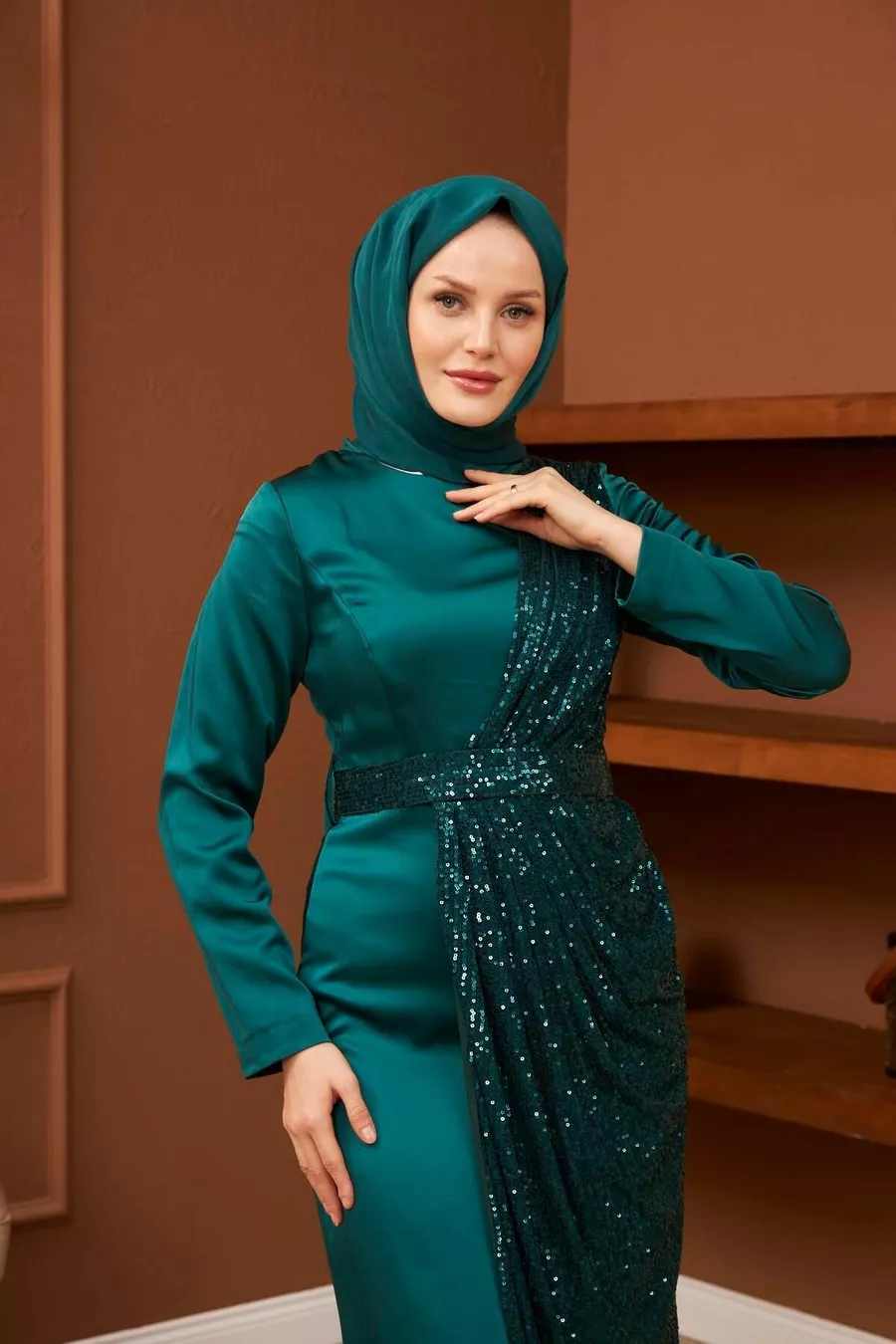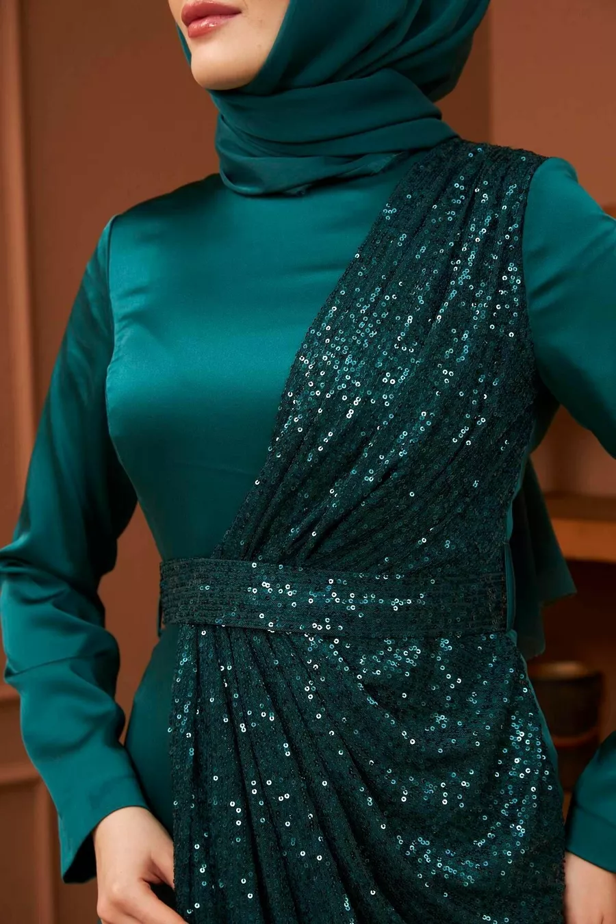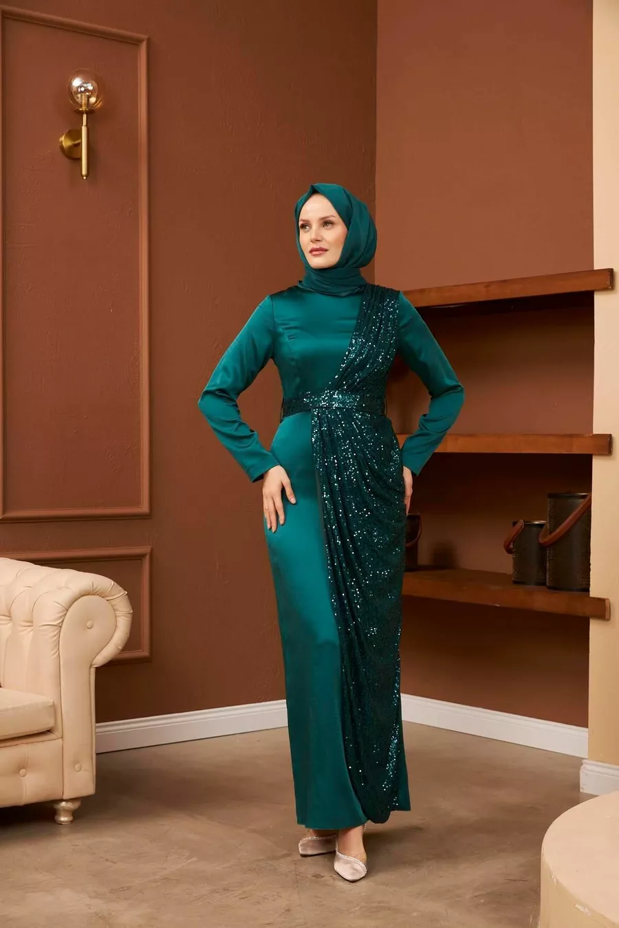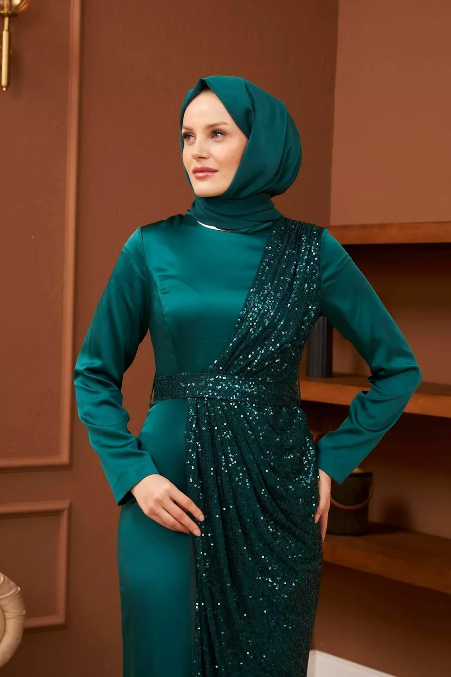 Abiti da sera in raso Nuray - Verde smeraldo