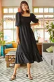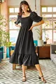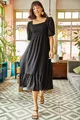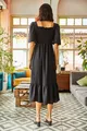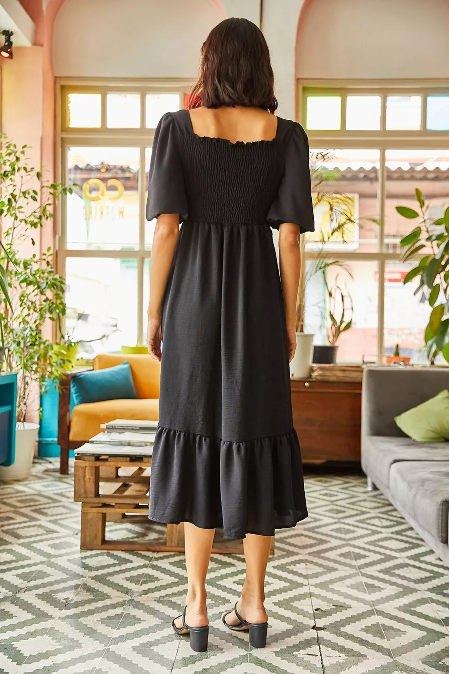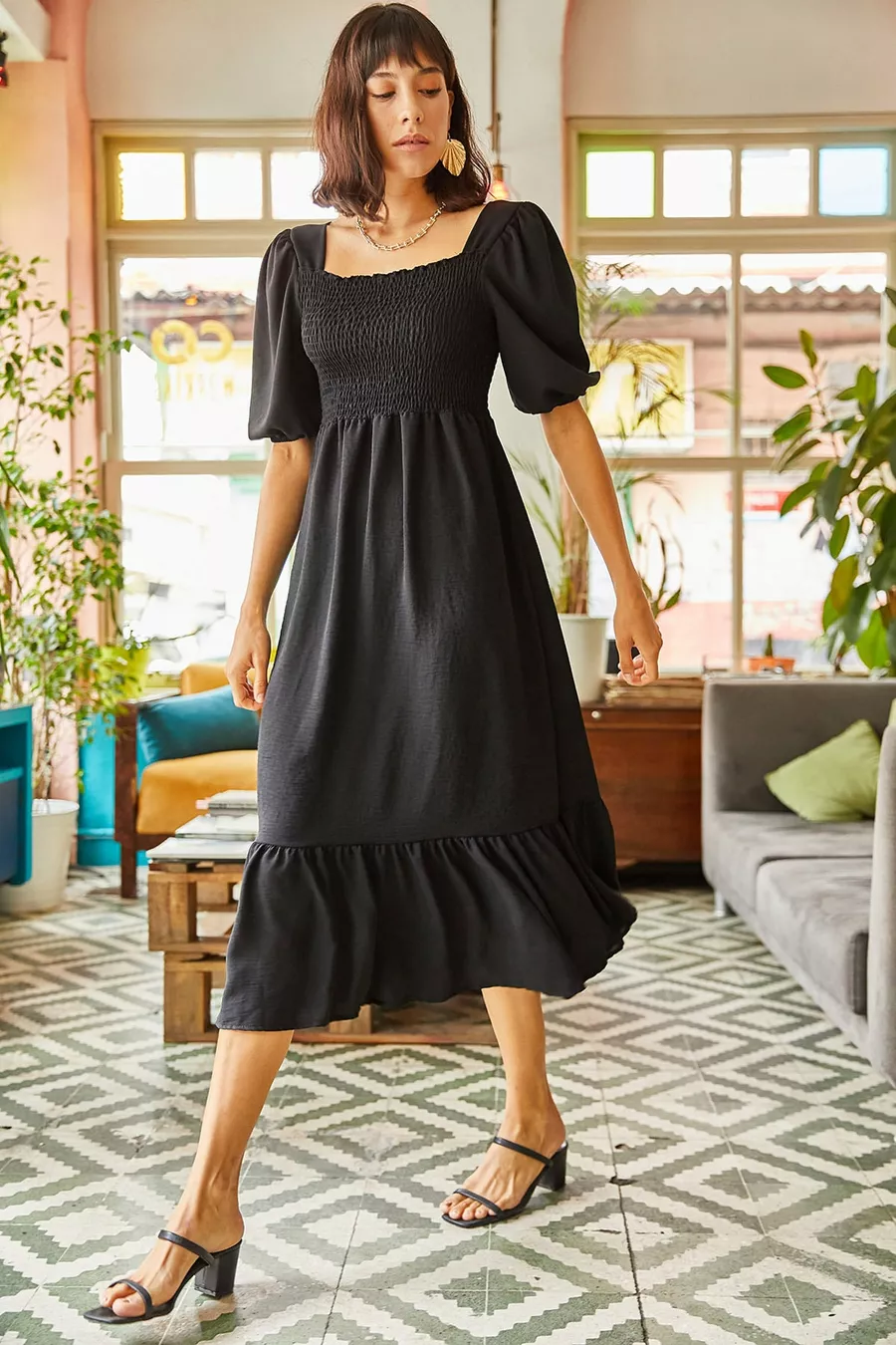 Abito Bodrum con corpetto increspato nero da donna, scollo quadrato