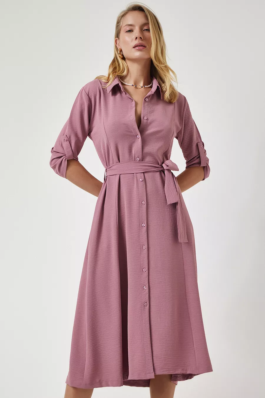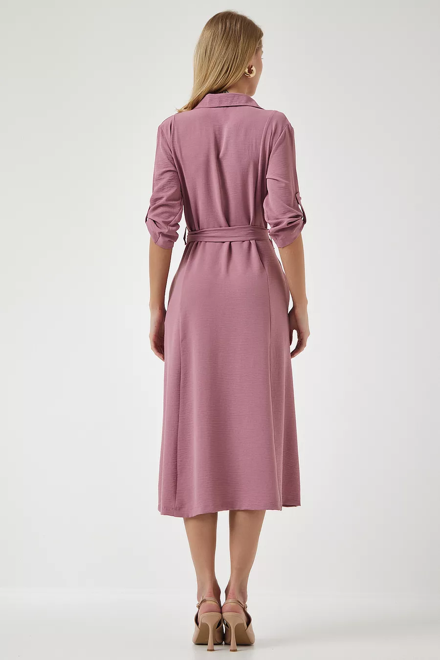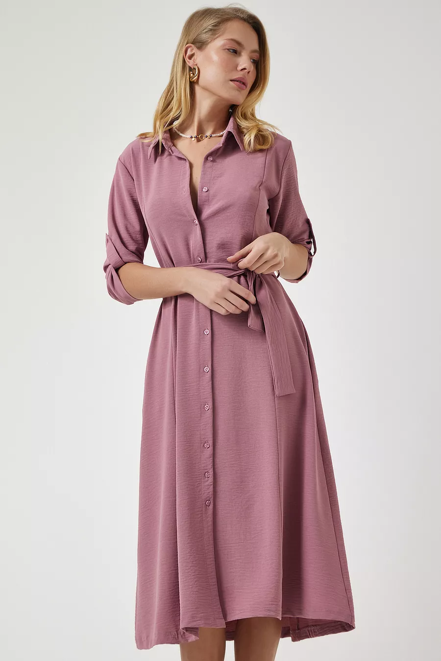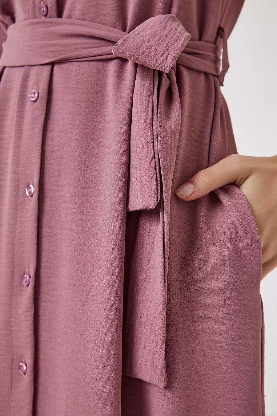 Abito Camicia da Donna con Cintura Colore Rosa Cipria