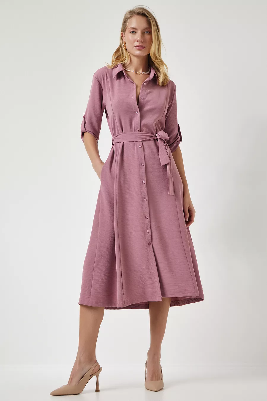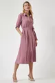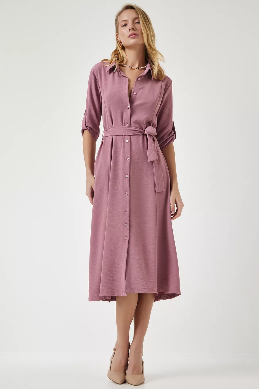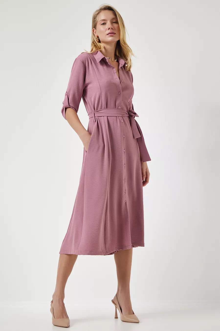 Abito Camicia da Donna con Cintura Colore Rosa Cipria