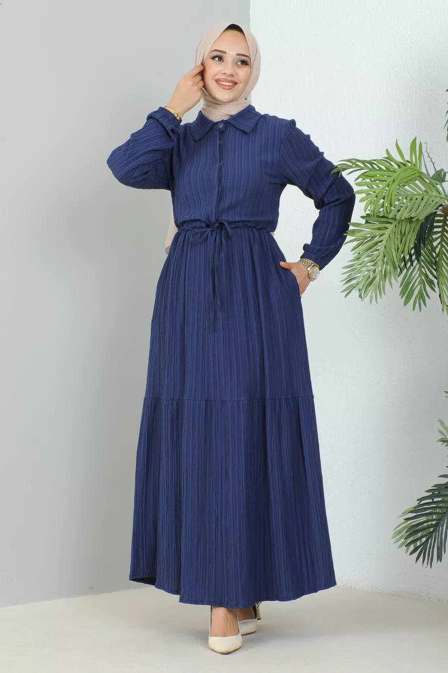 Abito con colletto a camicia e mezzi bottoni Lara