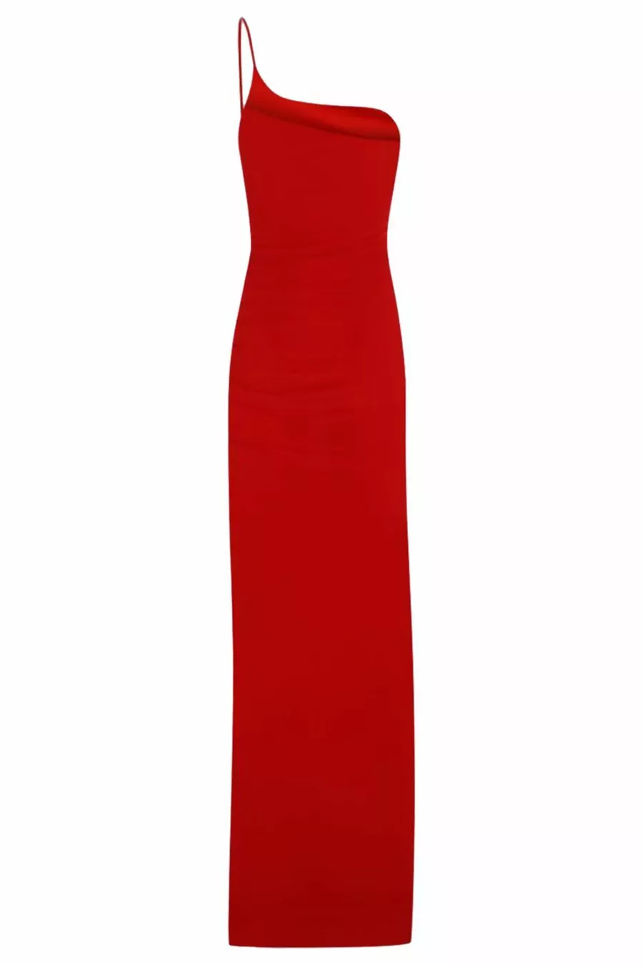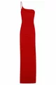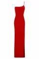 Abito da sera lungo con cinturino in corda monospalla rossa con fessura laterale drappeggiata e profonda