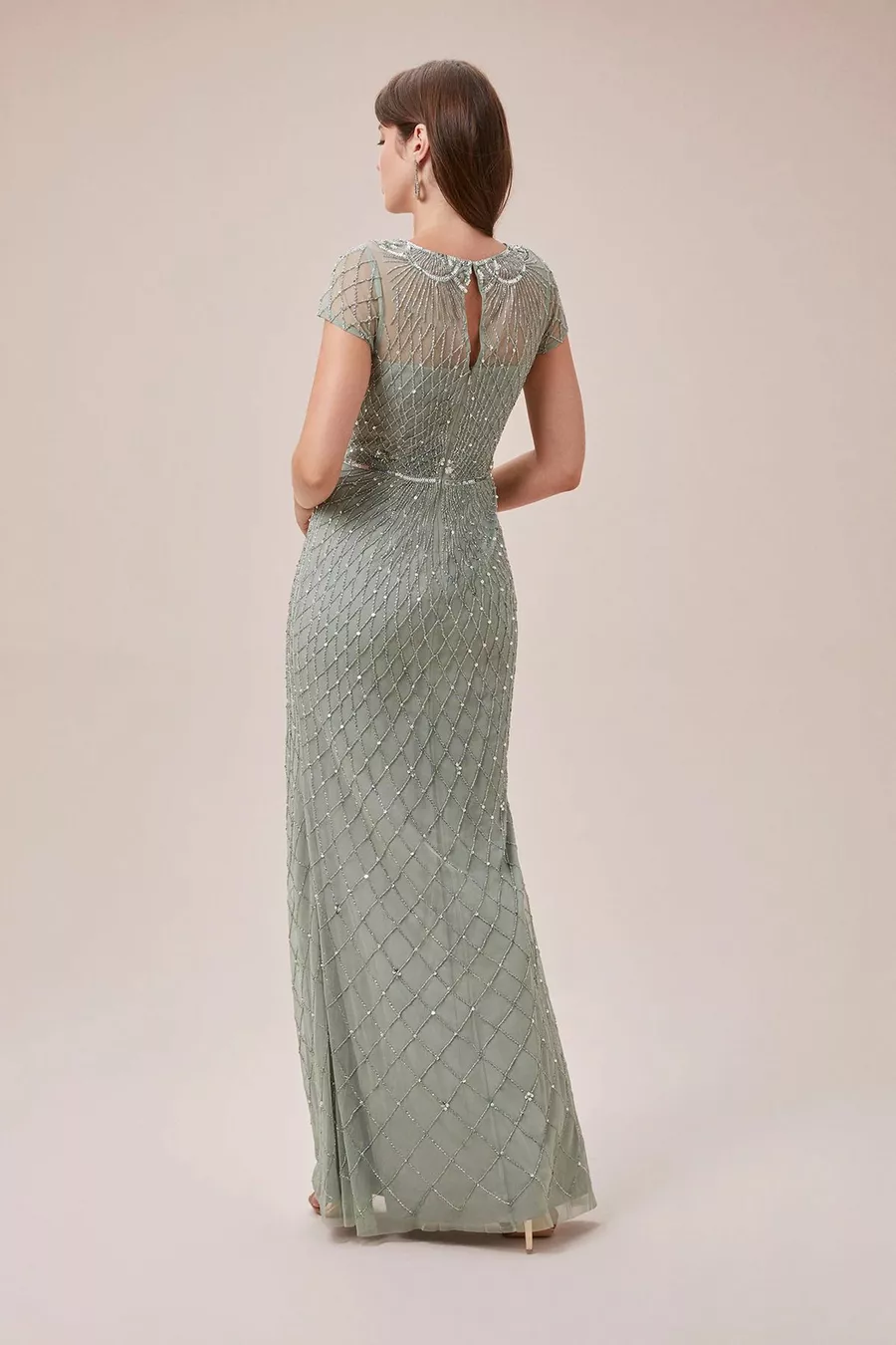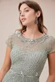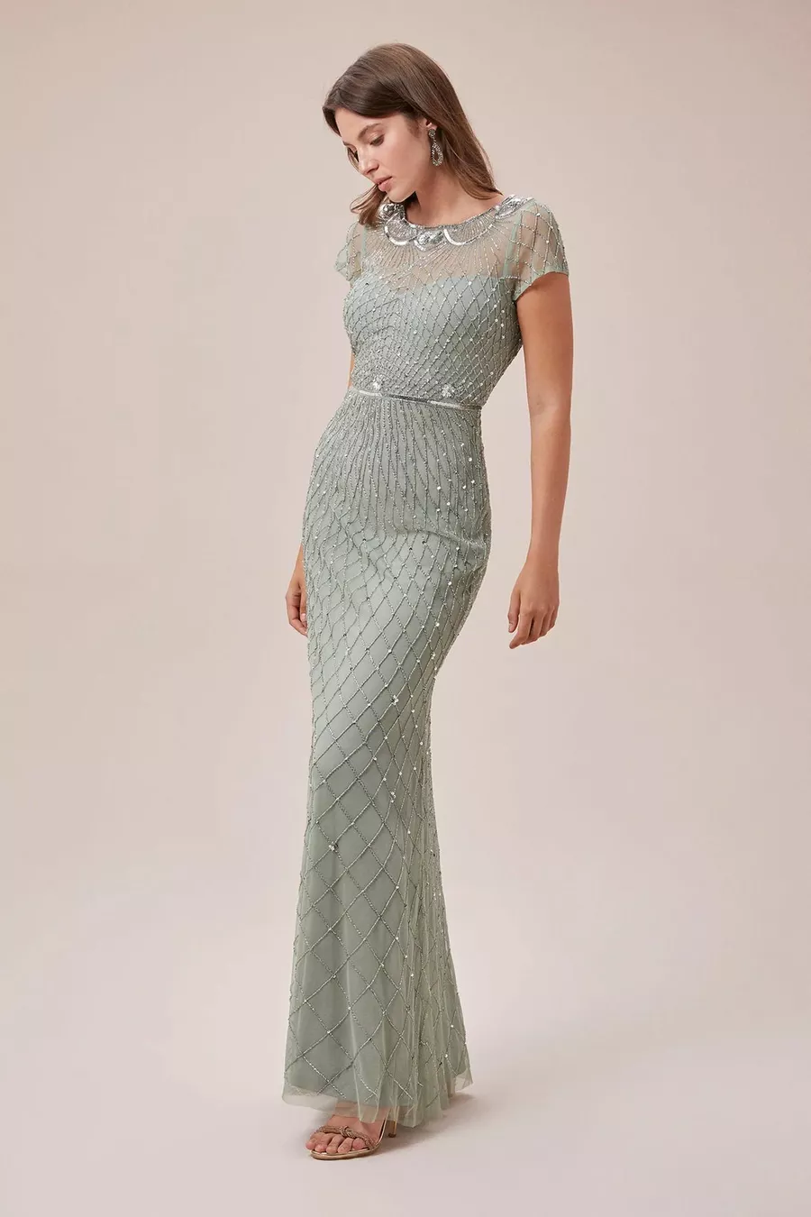 Abito da sera lungo a maniche corte ricamato con paillettes
