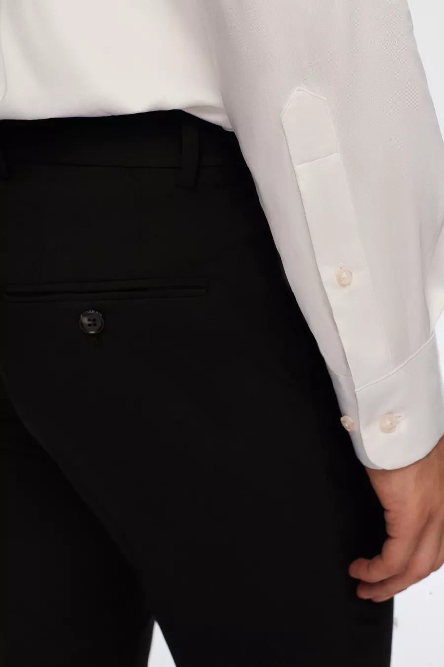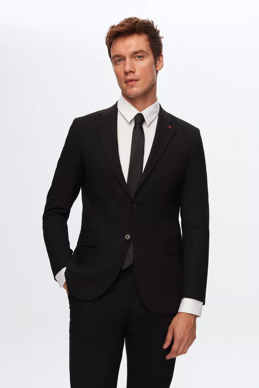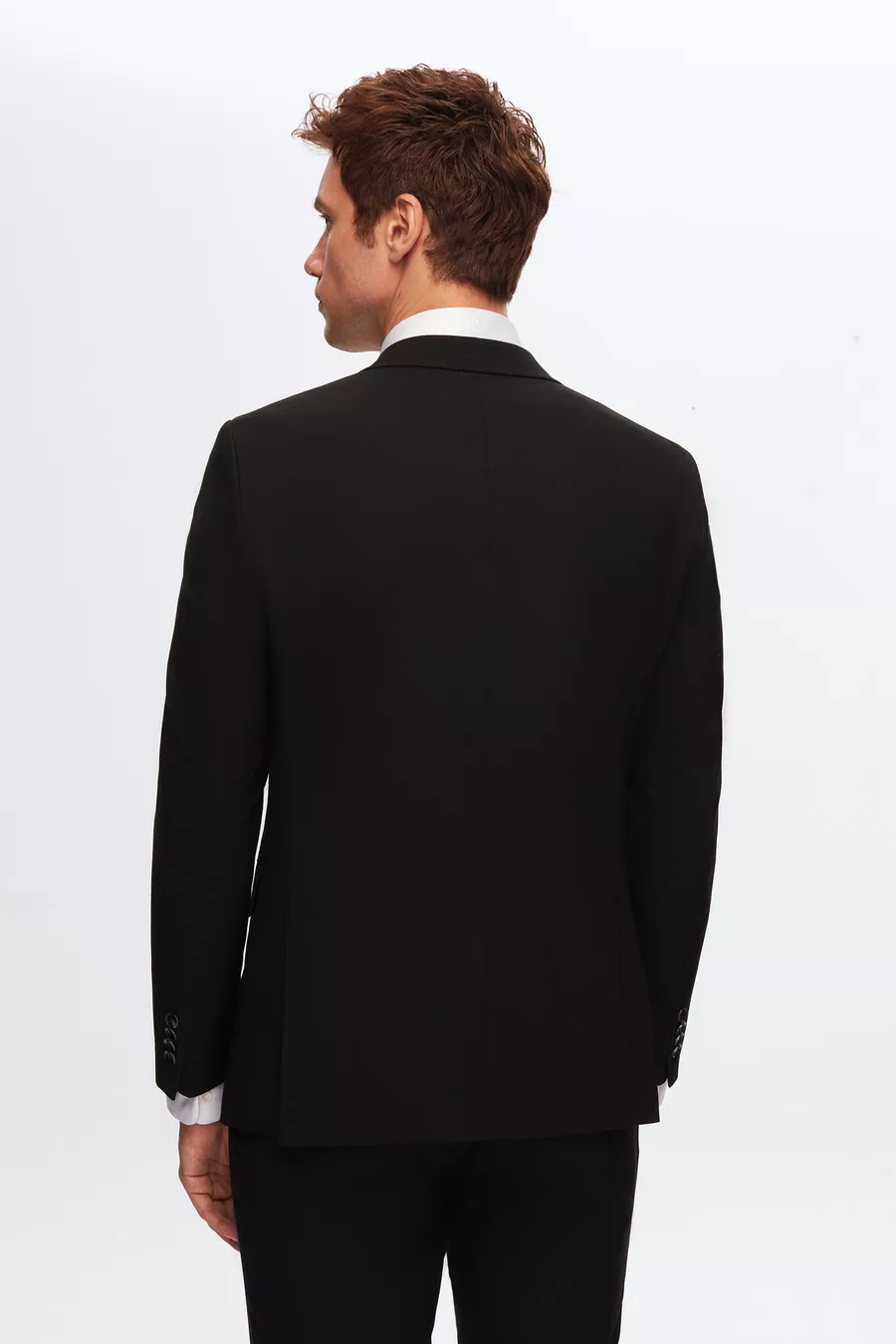 Abito da uomo Ds Damat Slim Fit nero liscio con Lycra, collo mono, spacco doppio, foderato