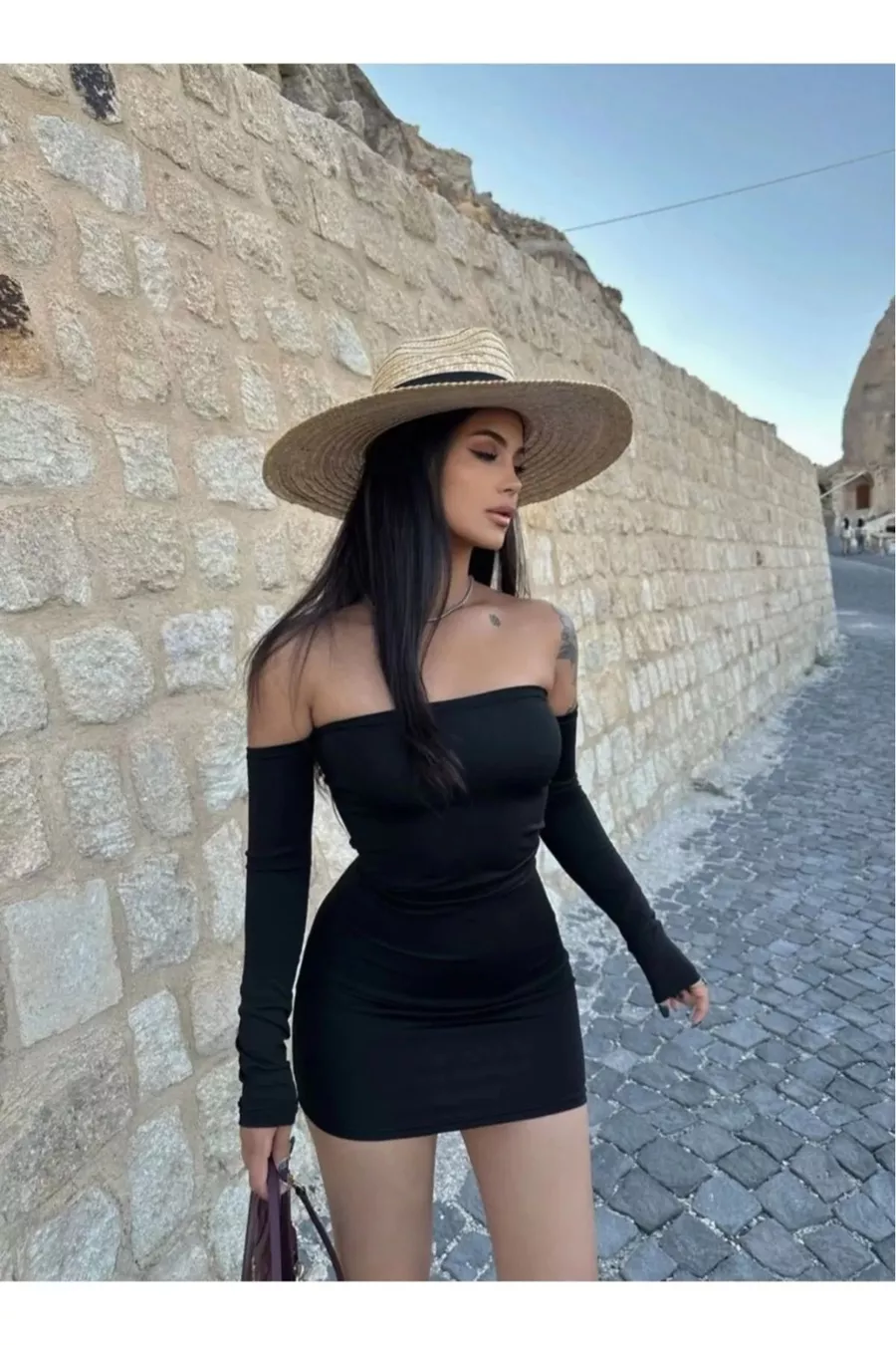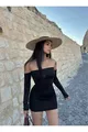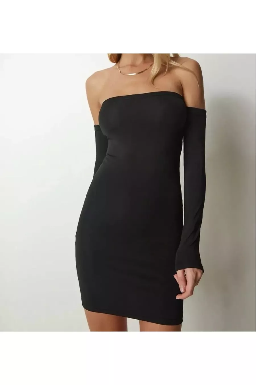 Abito donna nero corto senza spalline in tessuto scuba